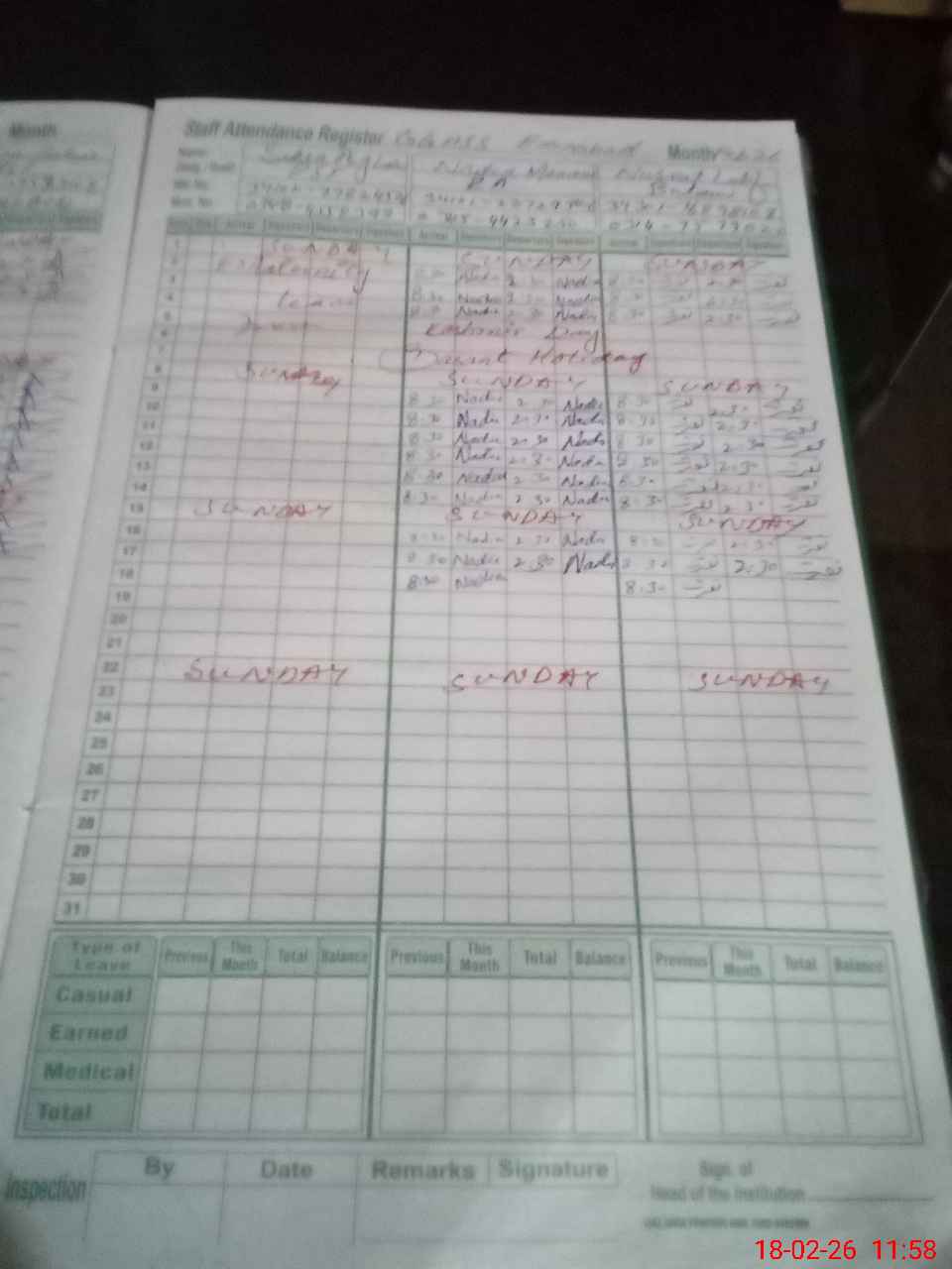 | CNIC | Full Name | Designation | R/C | Absence During Last Calender Month |