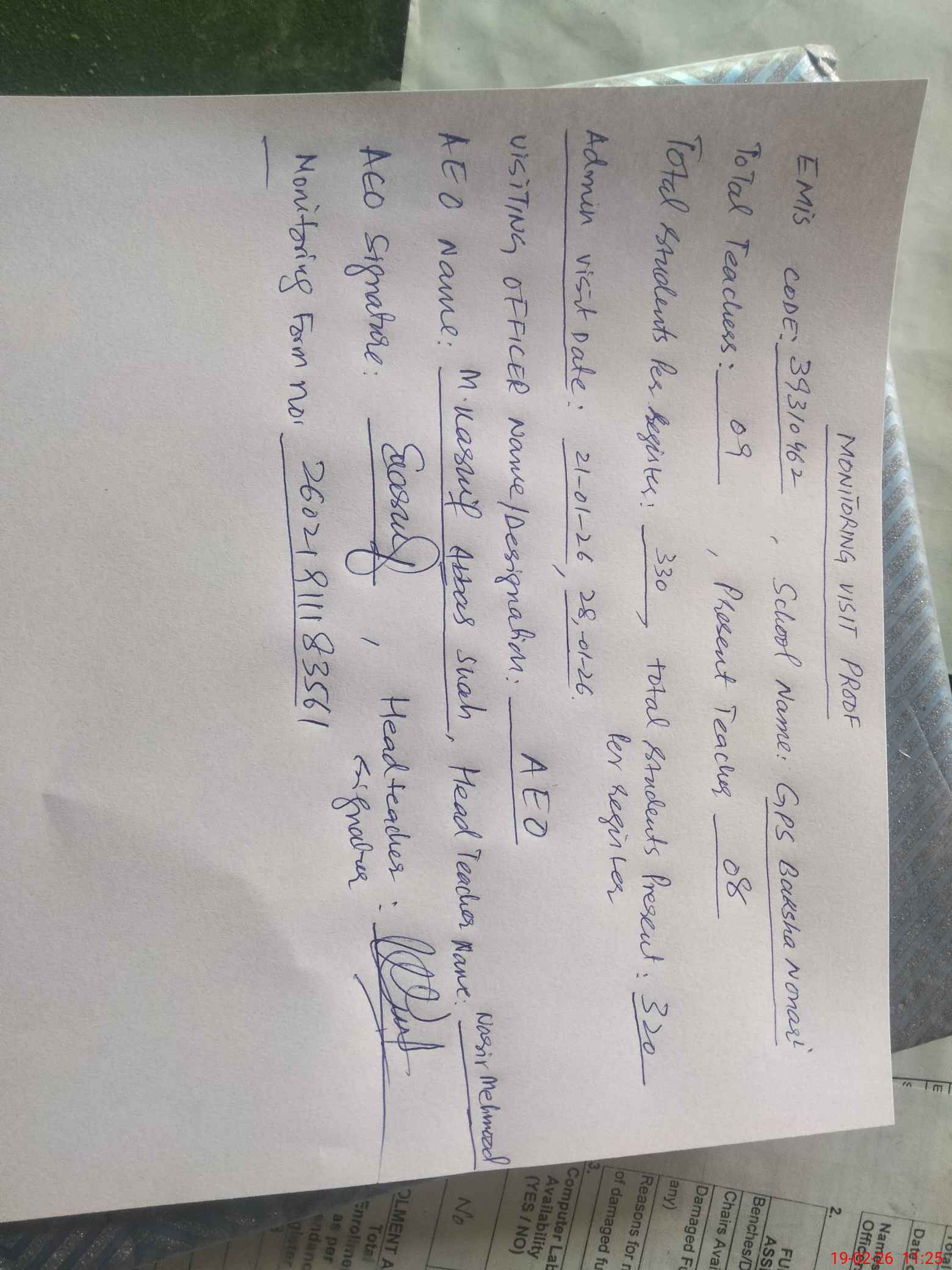 | EMIS Code: 39310462 | Name of School: GPS BAKSHA NONARI | |||
