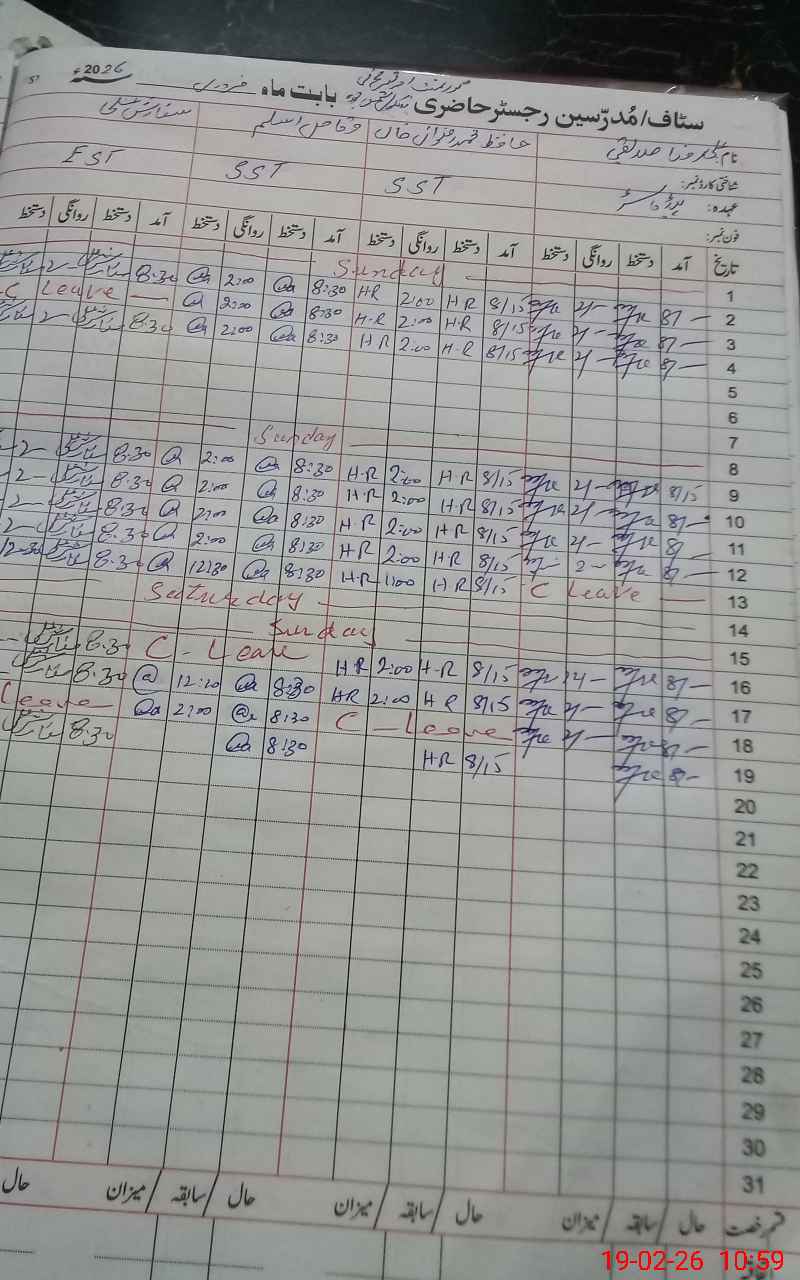 | Name: Al**** Ra**** Si**** Designation: (School Headmaster's/Headmistress's) SST Phone/Cell Number: 03**** |