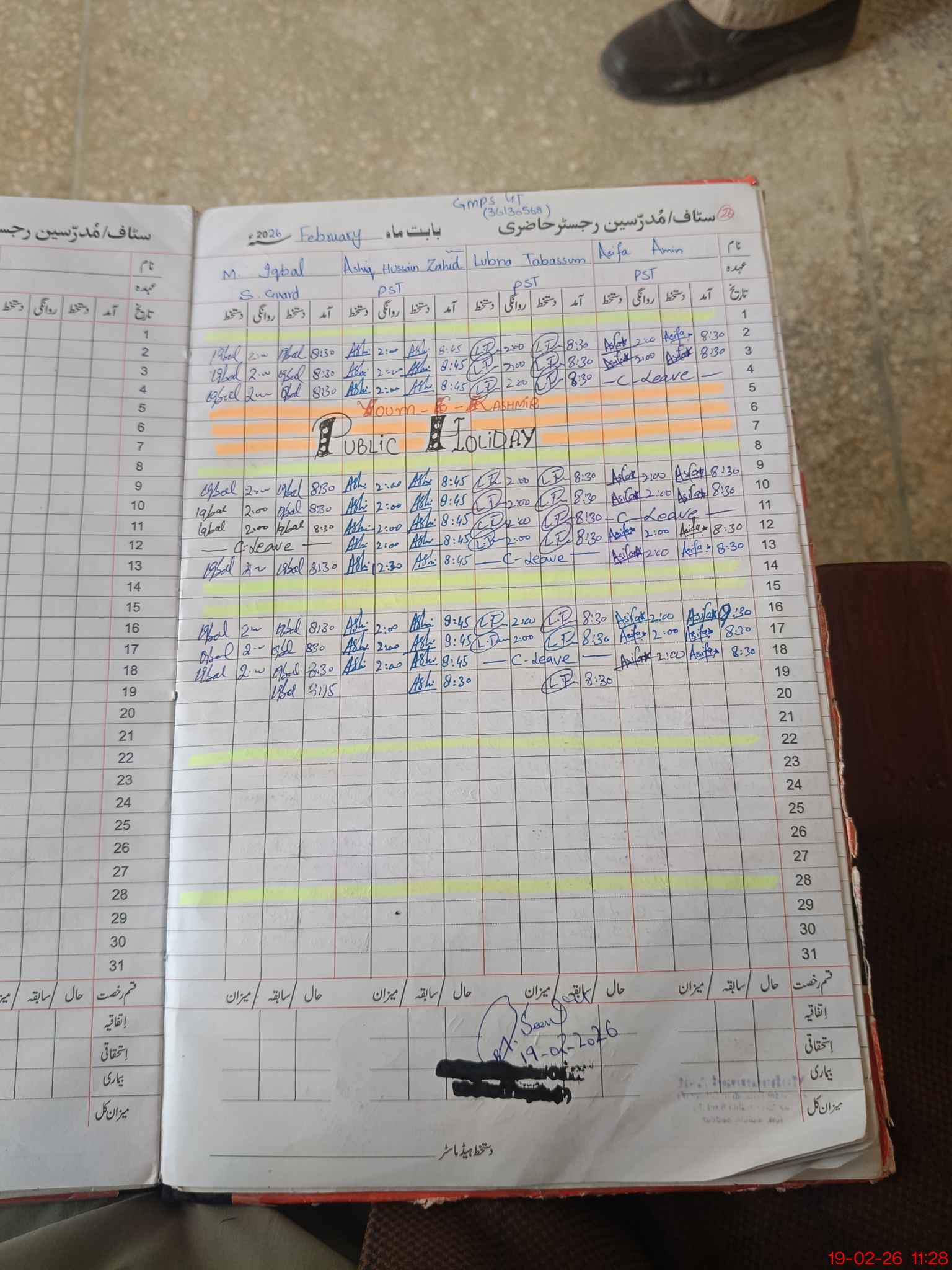 | Name: As**** Am**** Designation: (School Headmaster's/Headmistress's) PST Phone/Cell Number: 03**** |