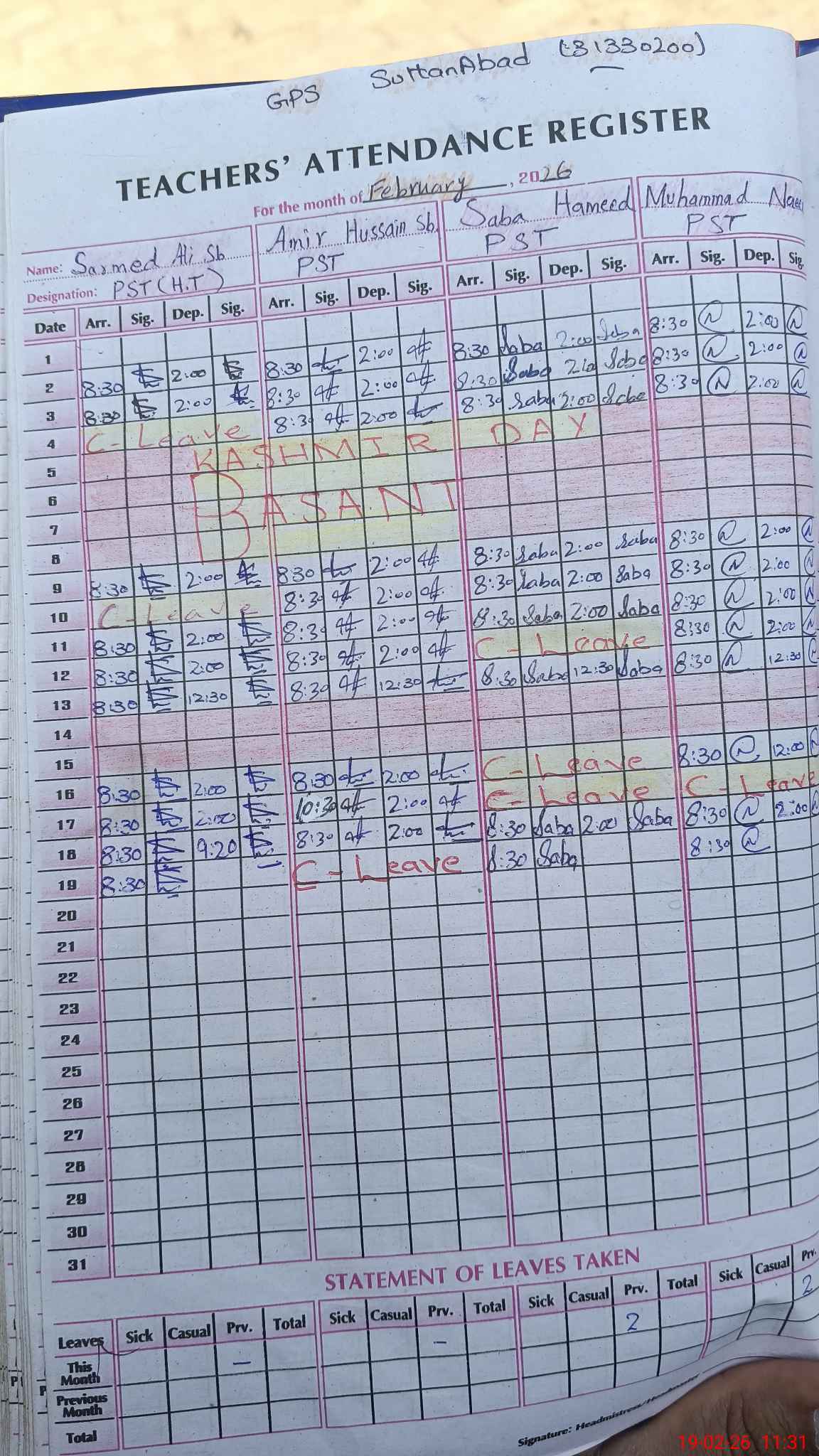 | EMIS Code: 31330200 | Name of School: GPS SULTAN ABAD | |||
