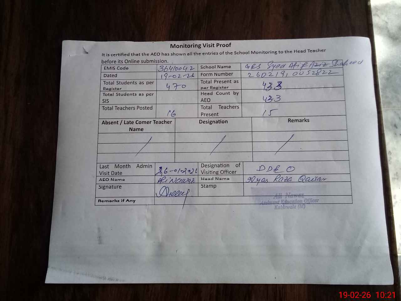 | EMIS Code: 36410042 | Name of School: GES SYED ATIF AZIZ SHAHEED (GES KABIR WALA NO.2) , KABIRWALA | |||