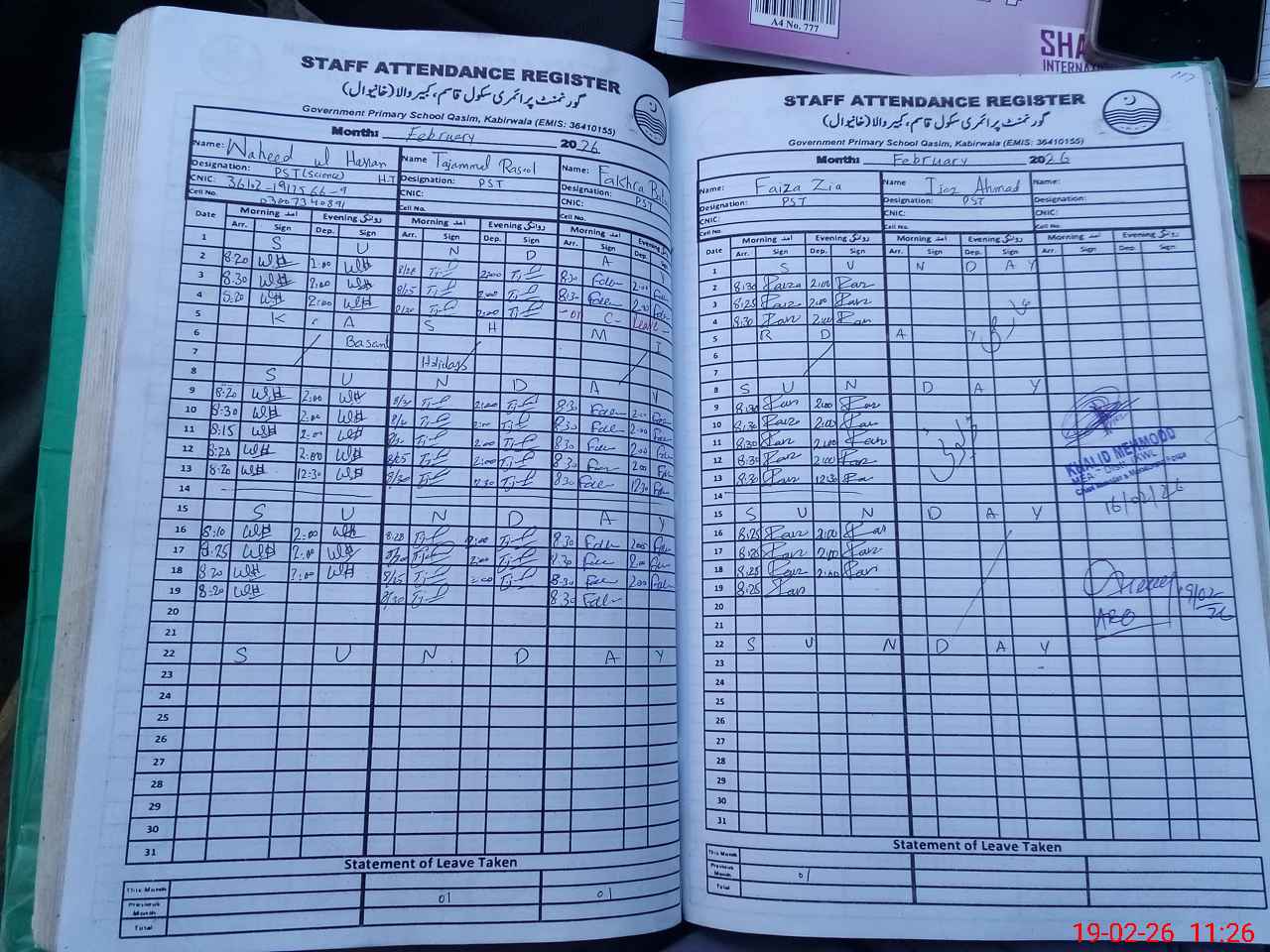 | EMIS Code: 36410155 | Name of School: GPS QASIM KABIRWALA, KABIRWALA | |||