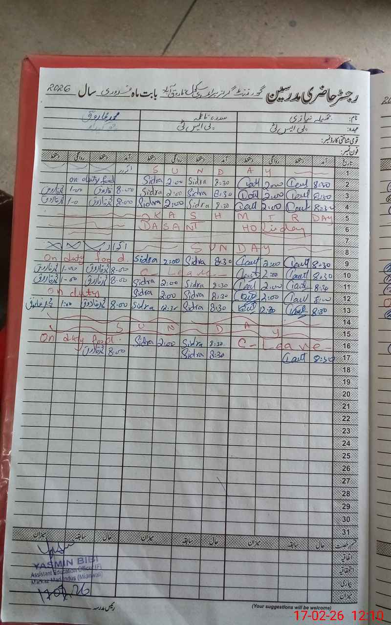 | Name: Sa**** bi**** Designation: (School Headmaster's/Headmistress's) PST Phone/Cell Number: 03**** |