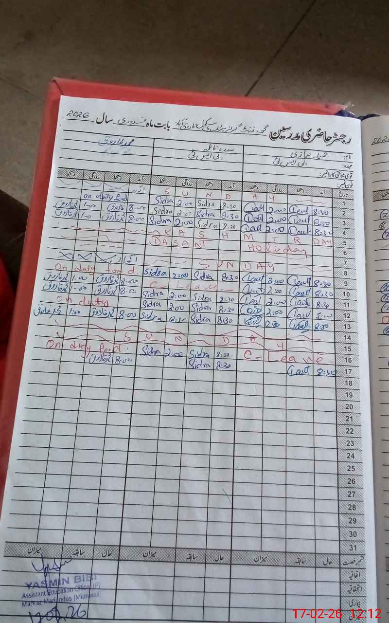 | CNIC | Full Name | Designation | R/C | Absence During Last Calender Month |