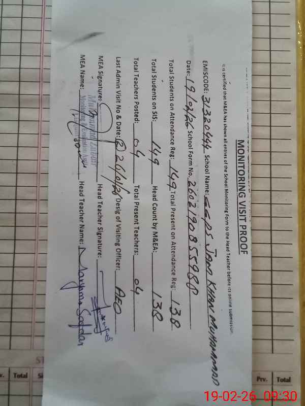 | EMIS Code: 31320444 | Name of School: GGPS JAM KHAN MUHAMMAD | |||