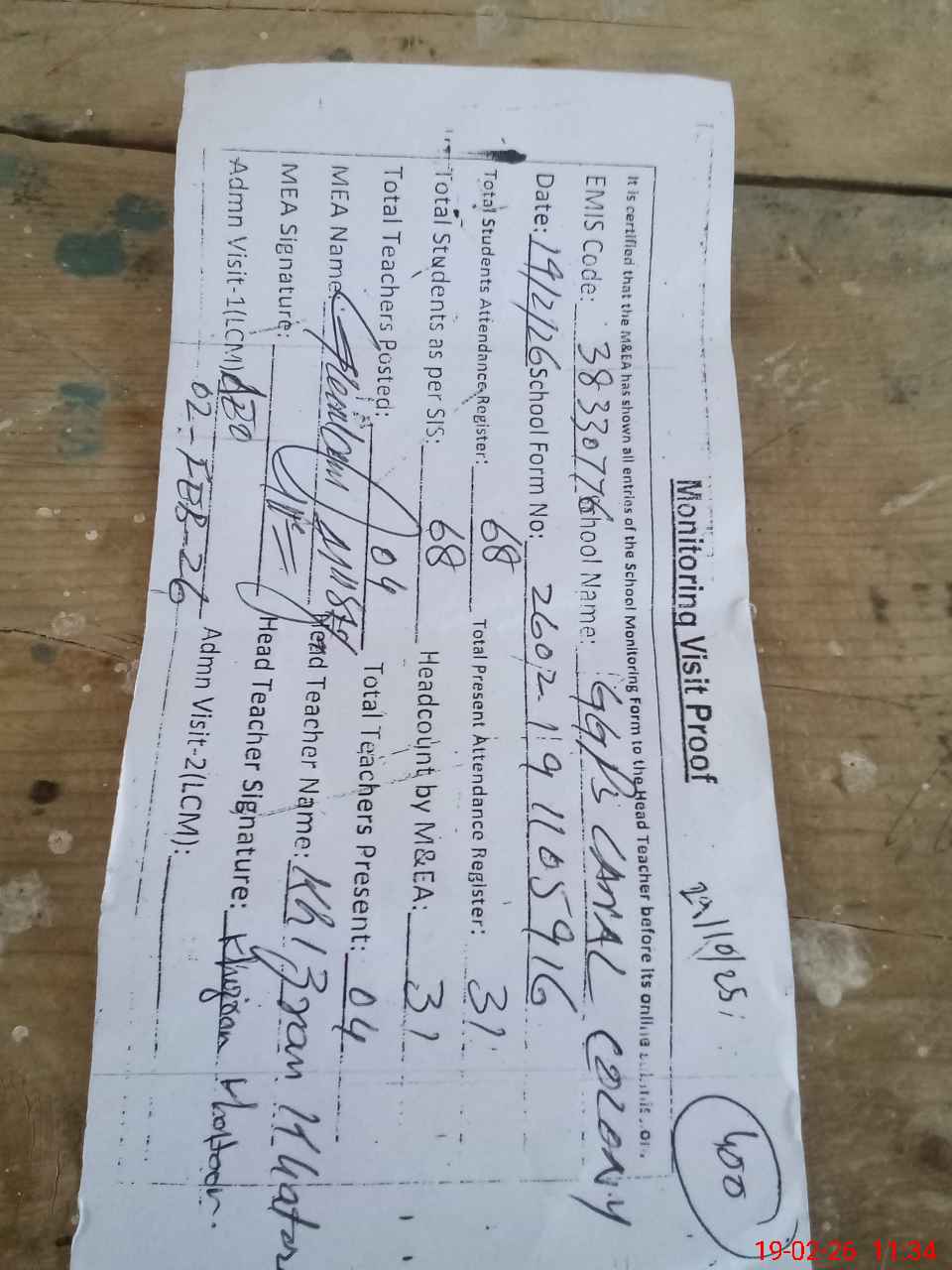 | EMIS Code: 38330776 | Name of School: GGPS CANAL COLONY PIPLAN | |||