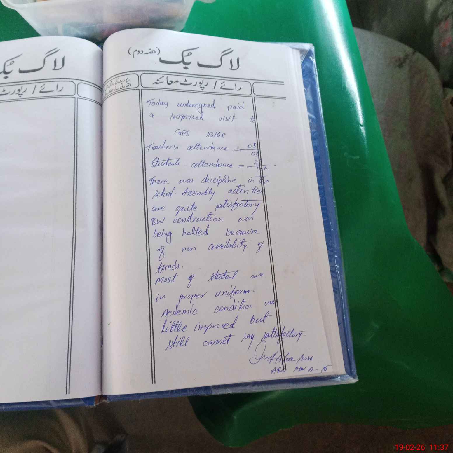 | EMIS Code: 31140174 | Name of School: GPS CHAK NO 113/6-R | |||