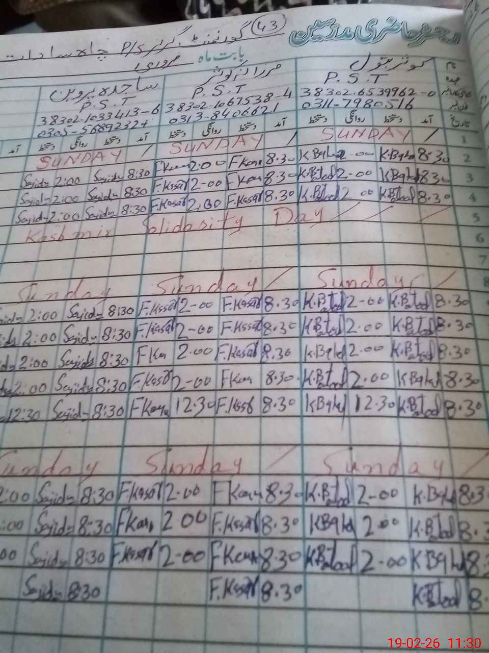 | Name: Ka**** Ba**** Na**** Designation: (School Headmaster's/Headmistress's) PST/PTC/JV Phone/Cell Number: 03**** |