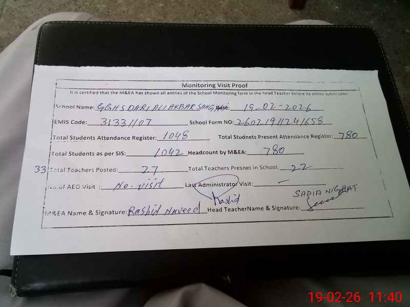 | EMIS Code: 31331107 | Name of School: GGHS DARI ALI AKBAR SANGHI | |||