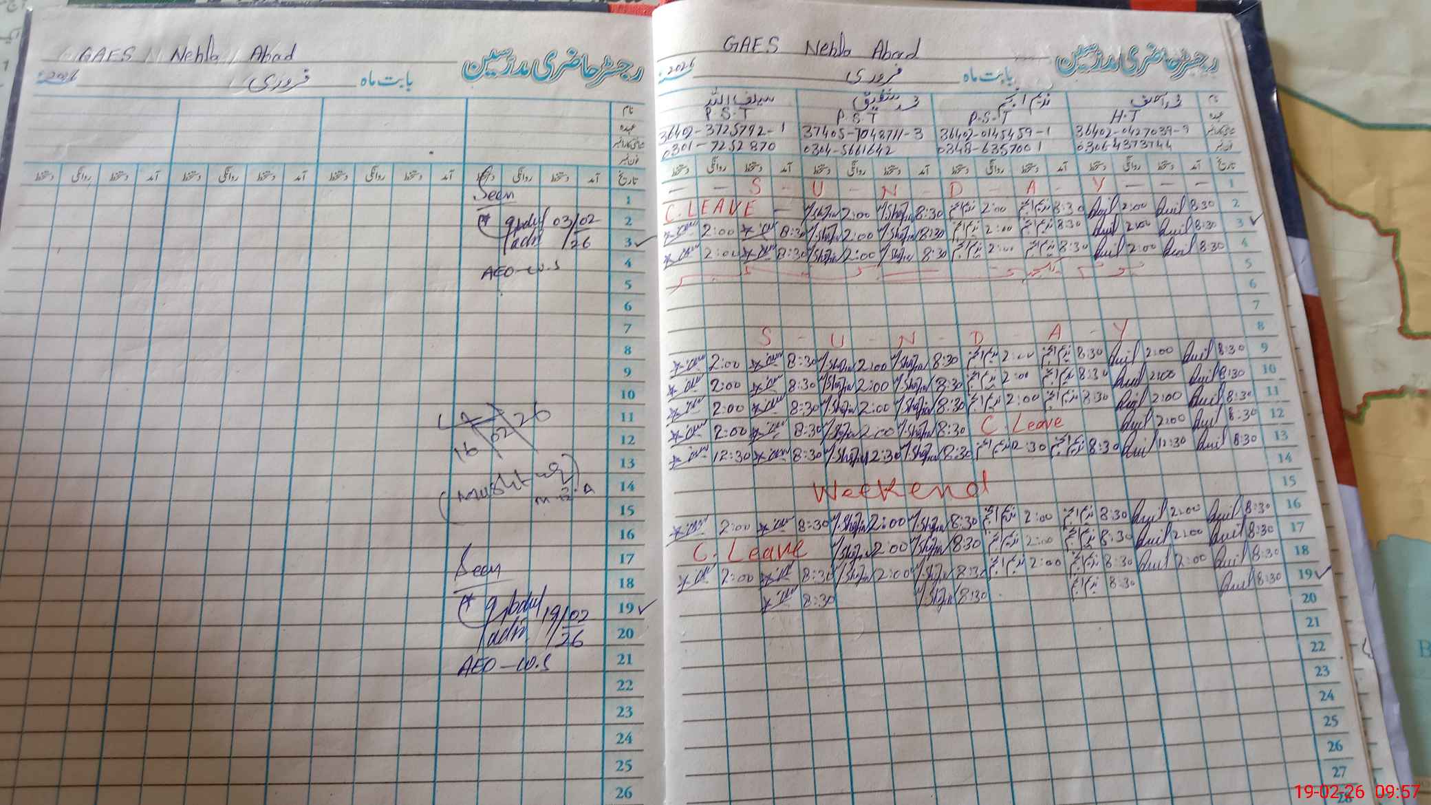 | Leave | Duty | Absent | Maternity | Medical | Ex- Pak |