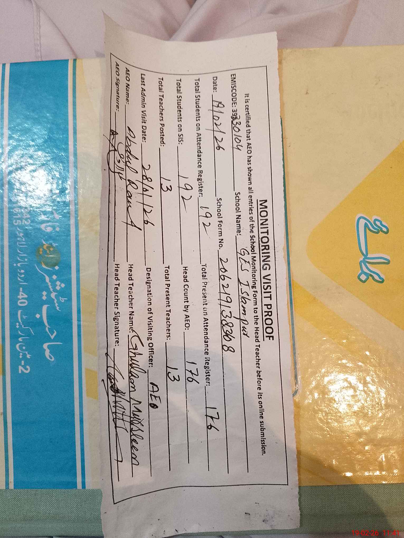 | EMIS Code: 39330104 | Name of School: GES ISLAM PUR | |||