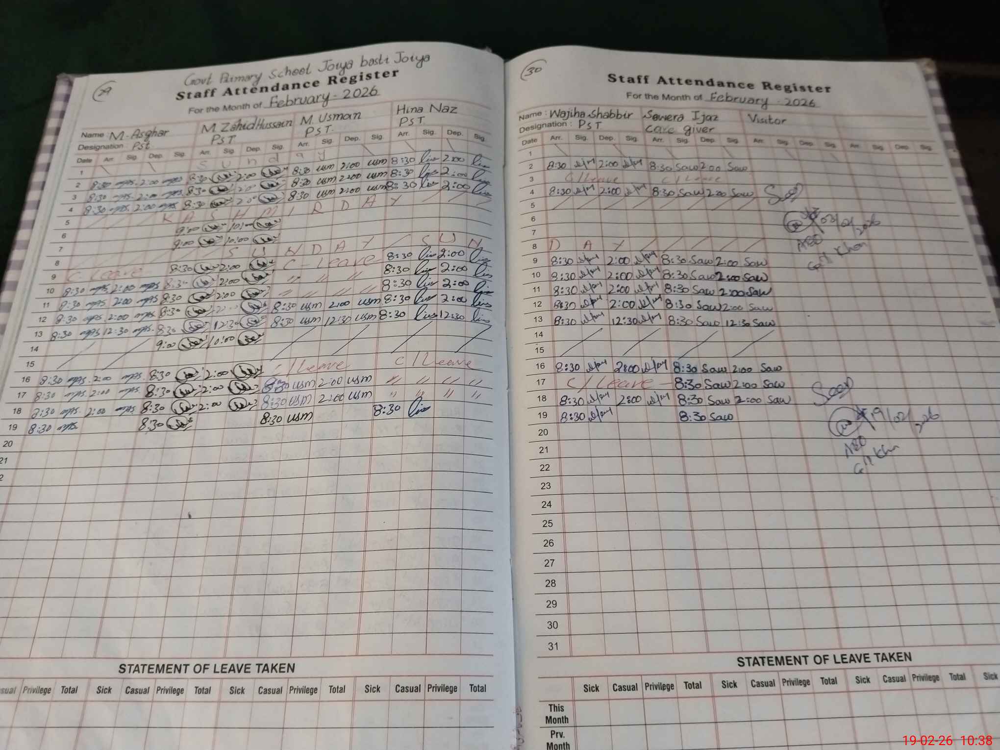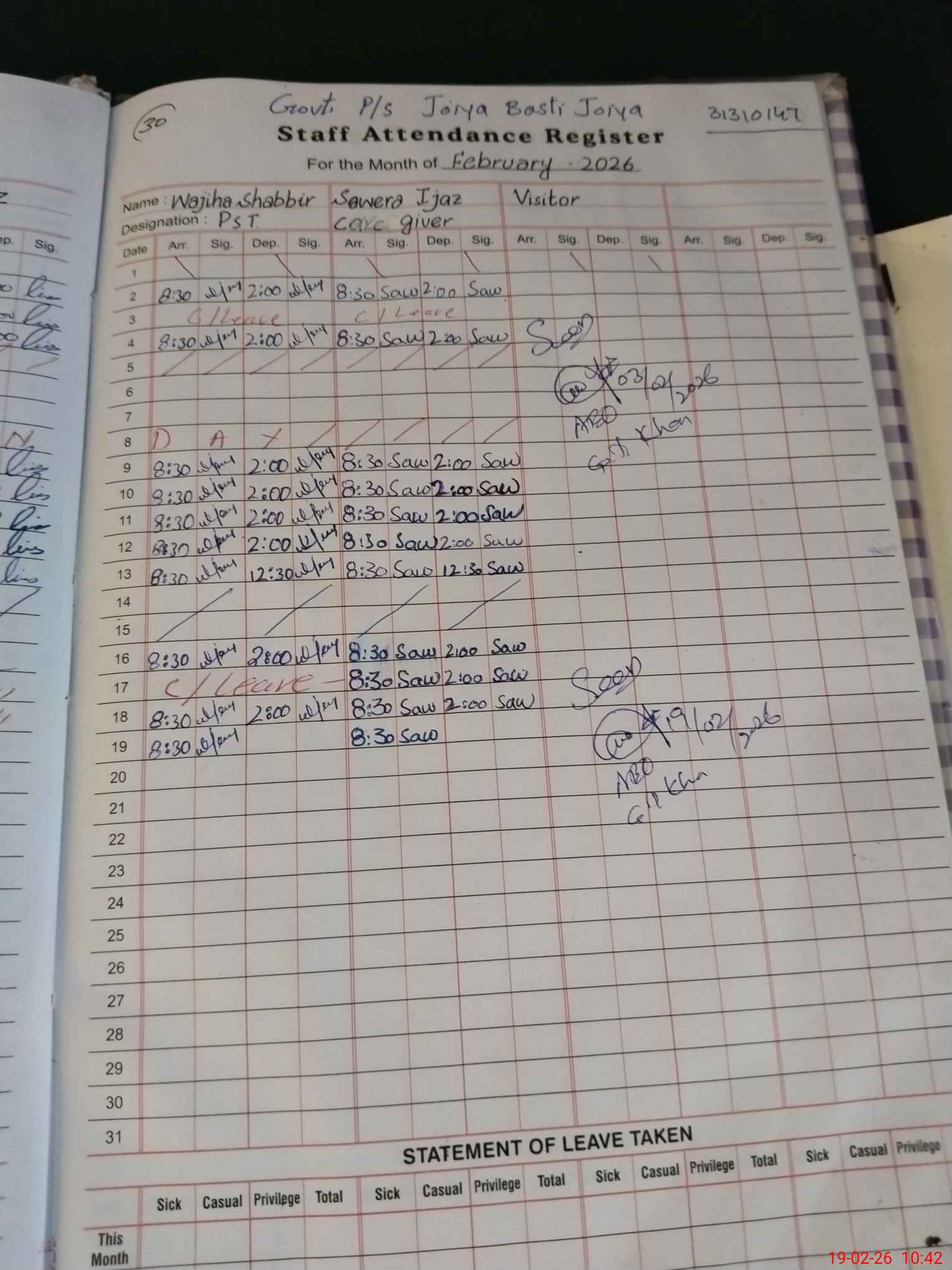 | Leave | Duty | Absent | Maternity | Medical | Ex- Pak |