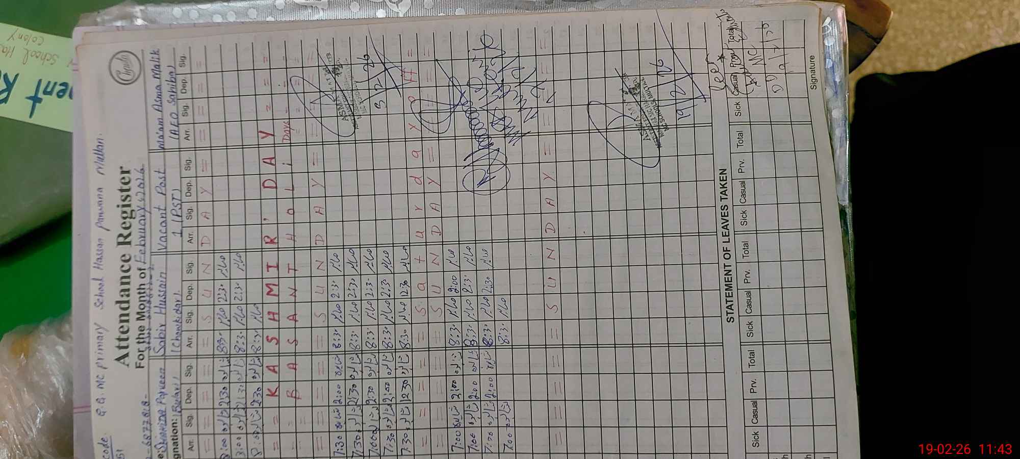 | Leave | Duty | Absent | Maternity | Medical | Ex- Pak |