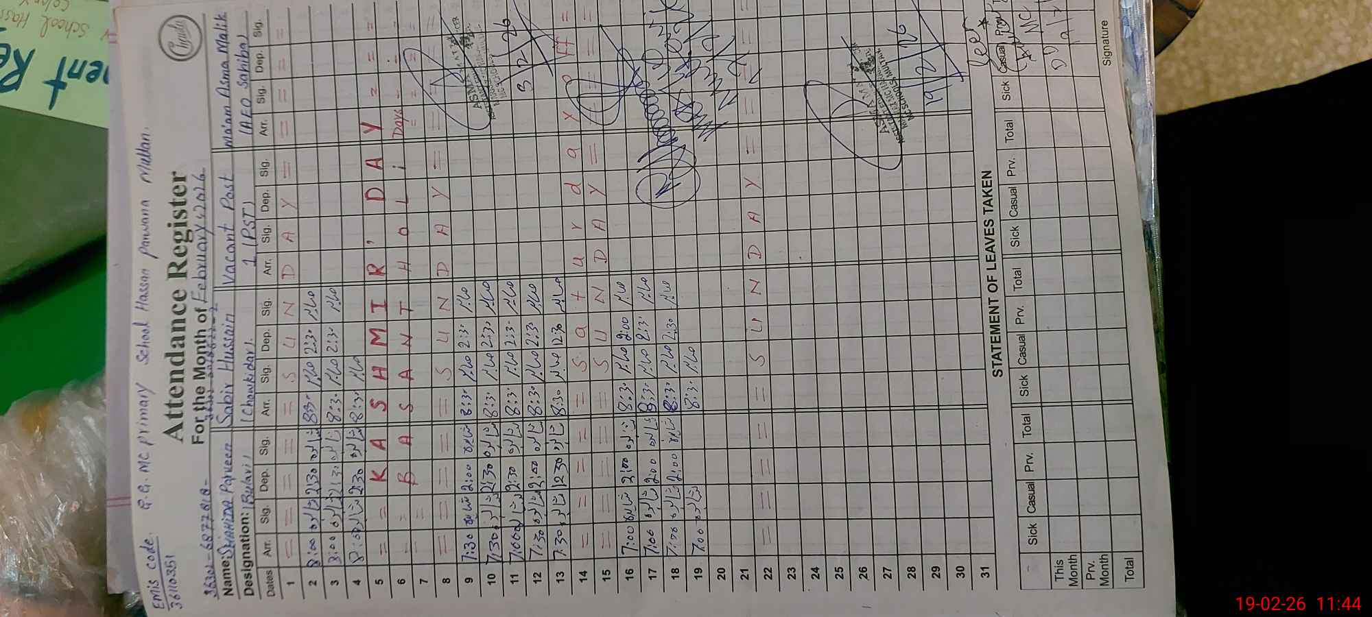 | EMIS Code: 36110351 | Name of School: GGPS MC HASSAN PARWANA | |||