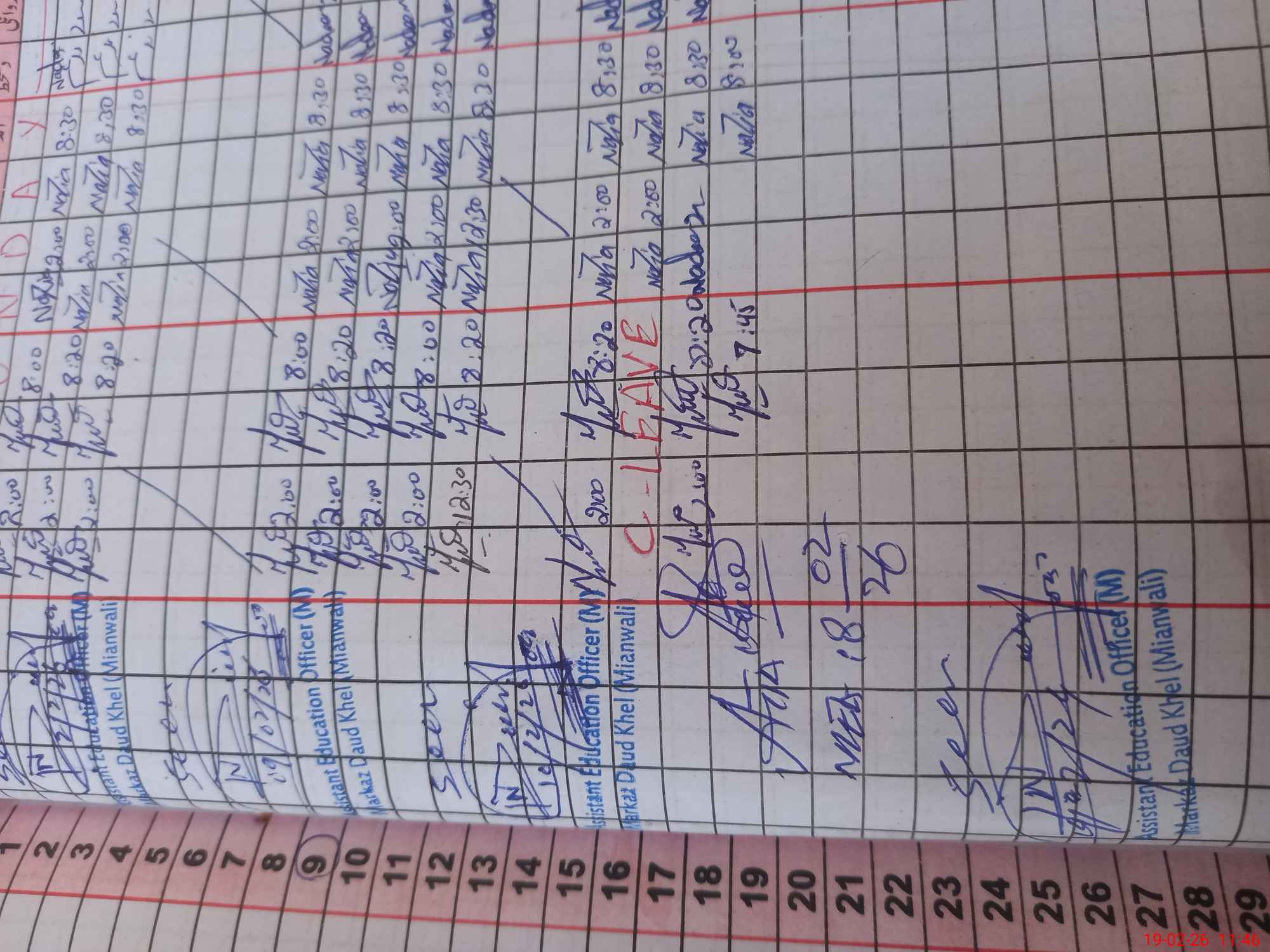| CNIC | Full Name | Designation | R/C | Absence During Last Calender Month |