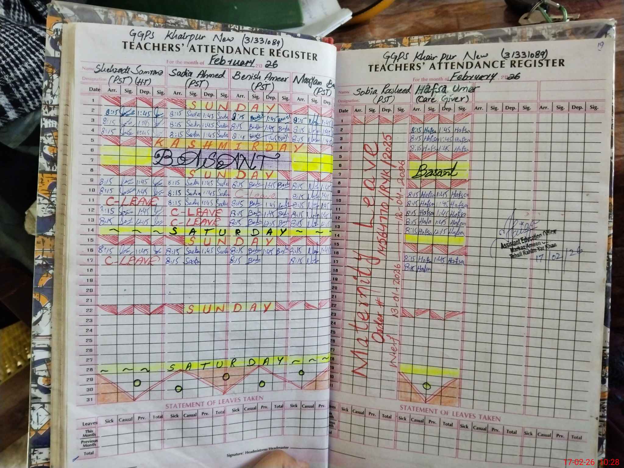 | 31**** | So**** Ra**** | PST Science/Maths | Regular | 0 | 0 | 0 | 0 | 0 | 0 | 0 | 0 | 0 | Maternity |