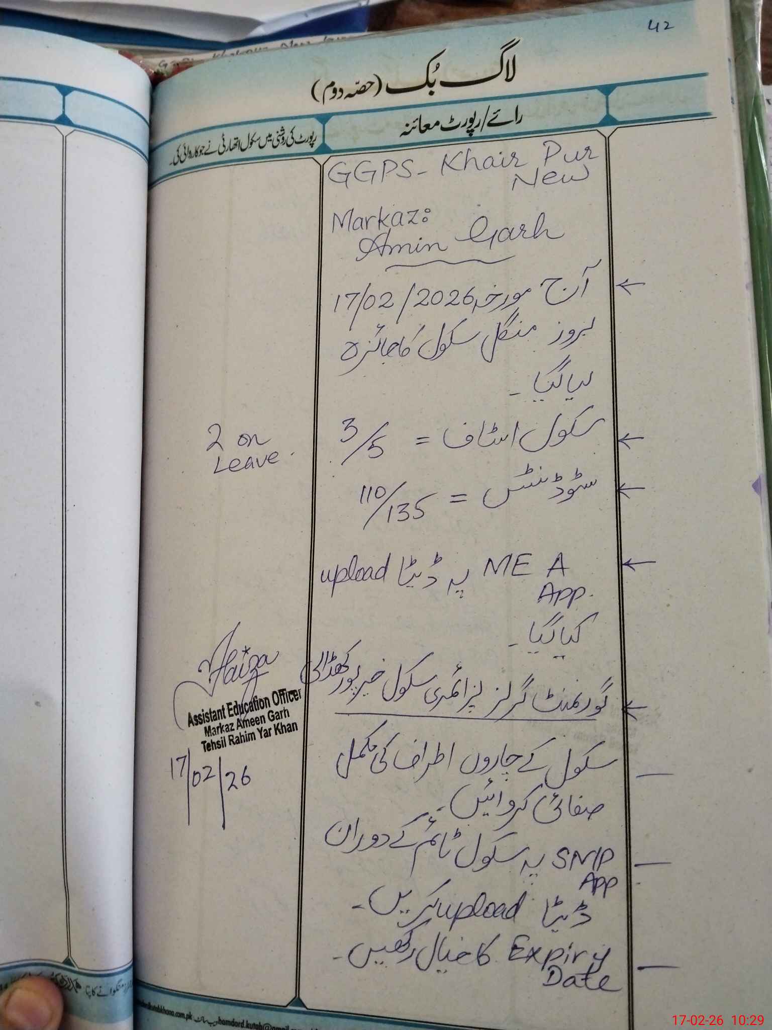 | Certified that this School was Inspected by the Undersigned MEA/DMO Today and the Information Stated Above is as Per Record. | |||||
