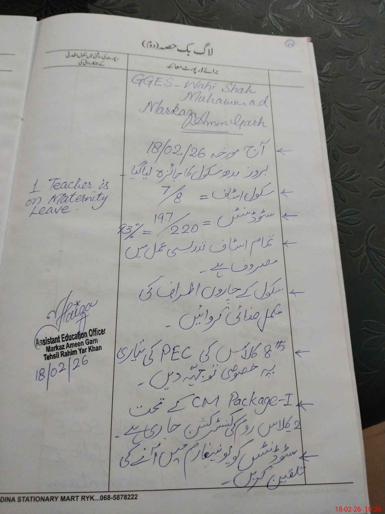 | EMIS Code: 31330140 | Name of School: GGES WAHI SHAH MUHAMMAD | |||