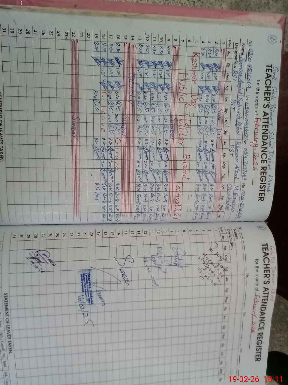 | Name: Sa**** Am**** Designation: (School Headmaster's/Headmistress's) PST Phone/Cell Number: 03**** |