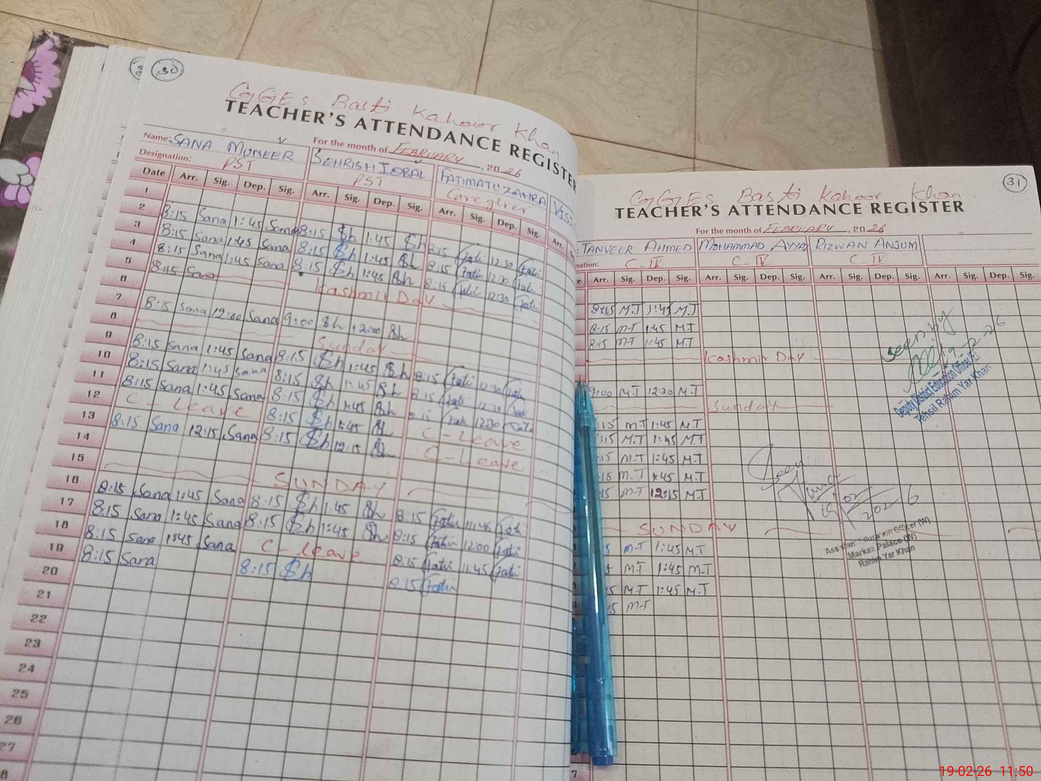 | Attendance Register | Head Teacher | MEA with School | Visit Proof |