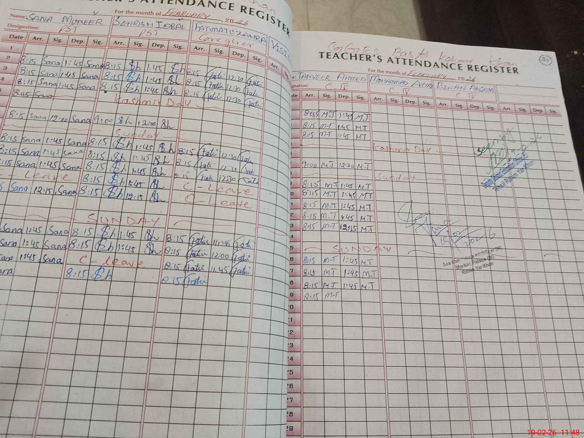 | CNIC | Full Name | Designation | R/C | Absence During Last Calender Month |