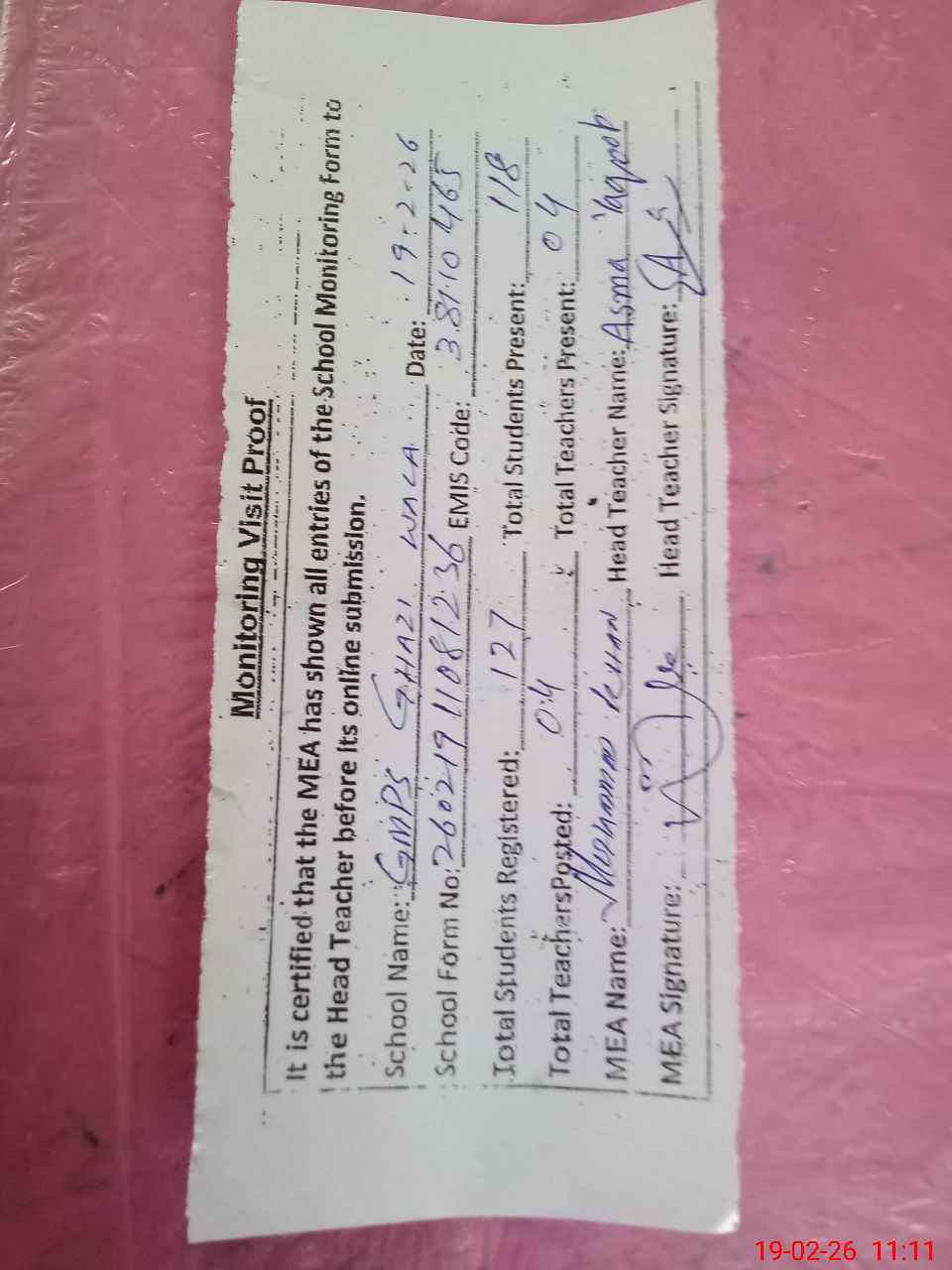 | EMIS Code: 38110465 | Name of School: GMPS GHAZI WALA | |||