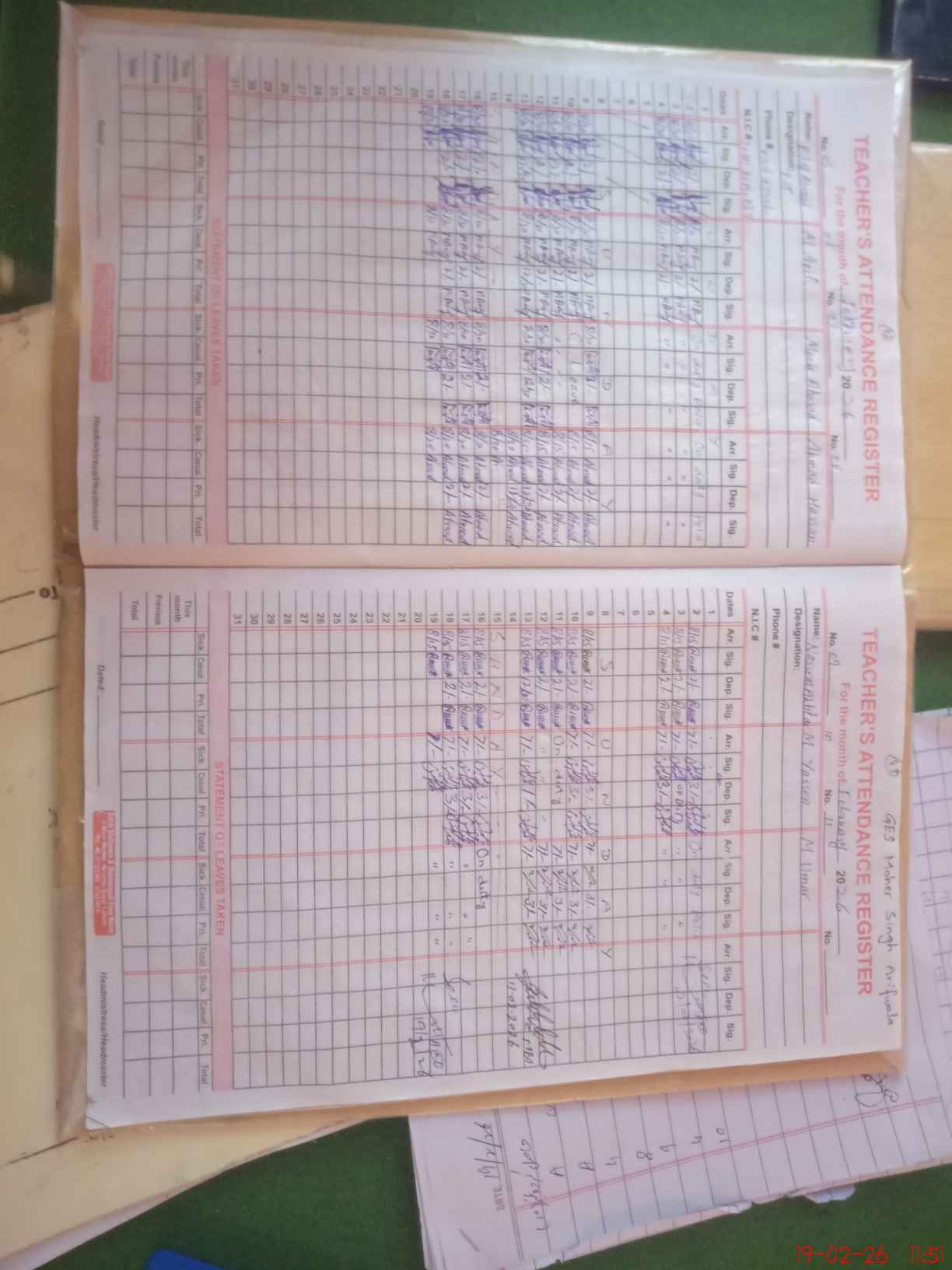 | CNIC | Full Name | Designation | R/C | Absence During Last Calender Month |