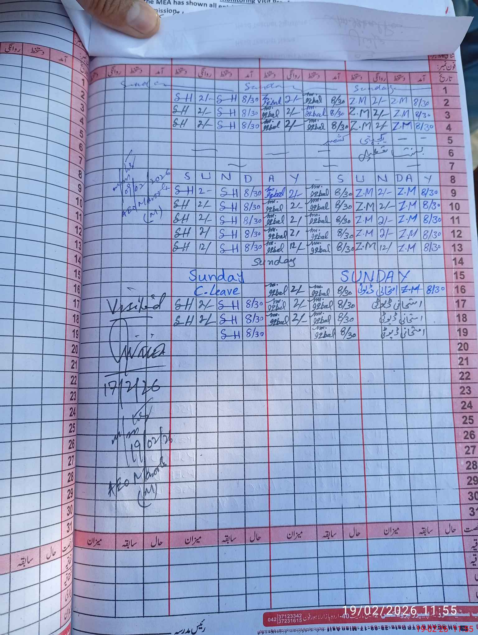 | Attendance Register | Head Teacher | MEA with School | Visit Proof |
