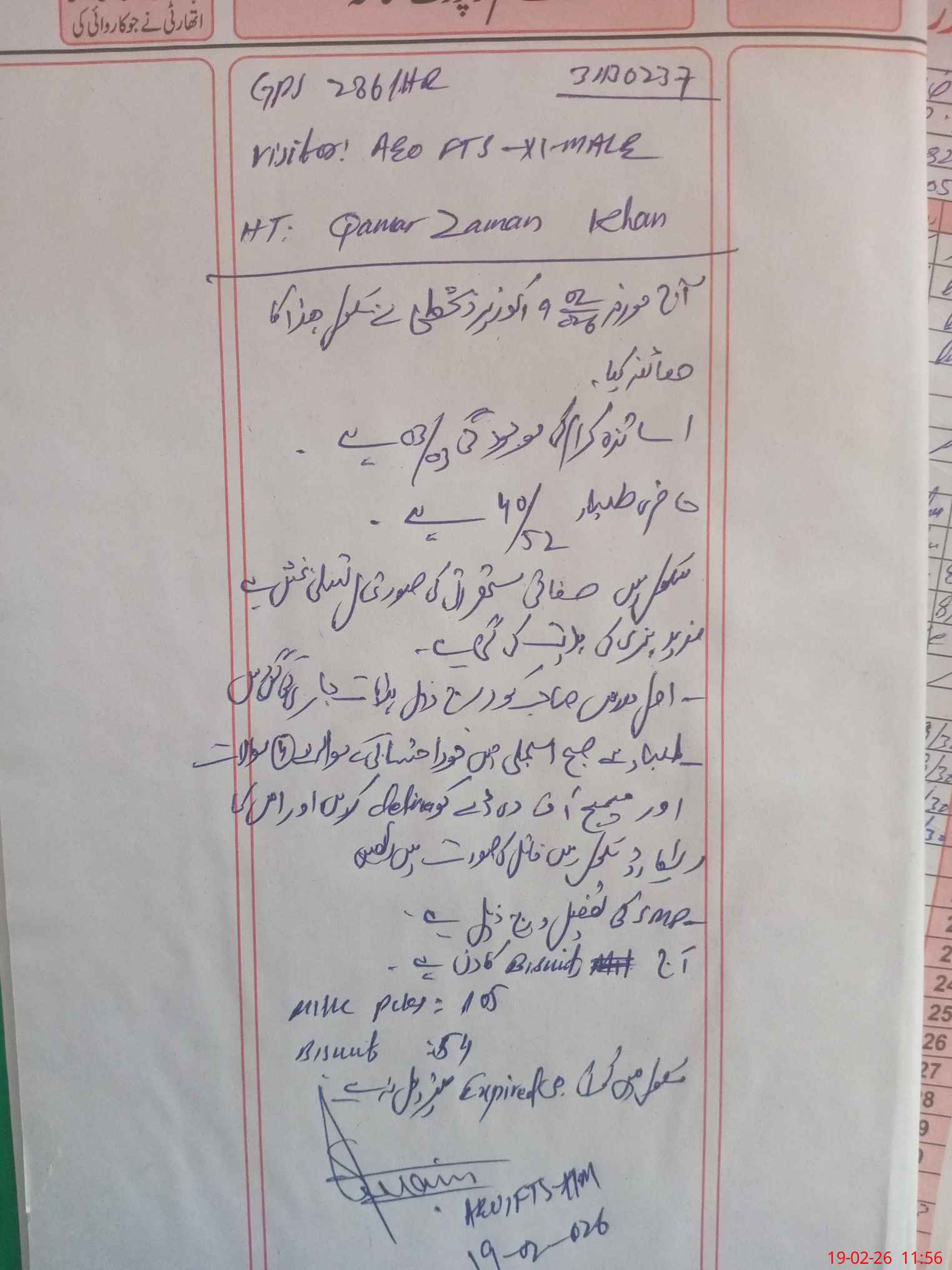 | EMIS Code: 31130237 | Name of School: GPS CHAK NO 286 HR | |||