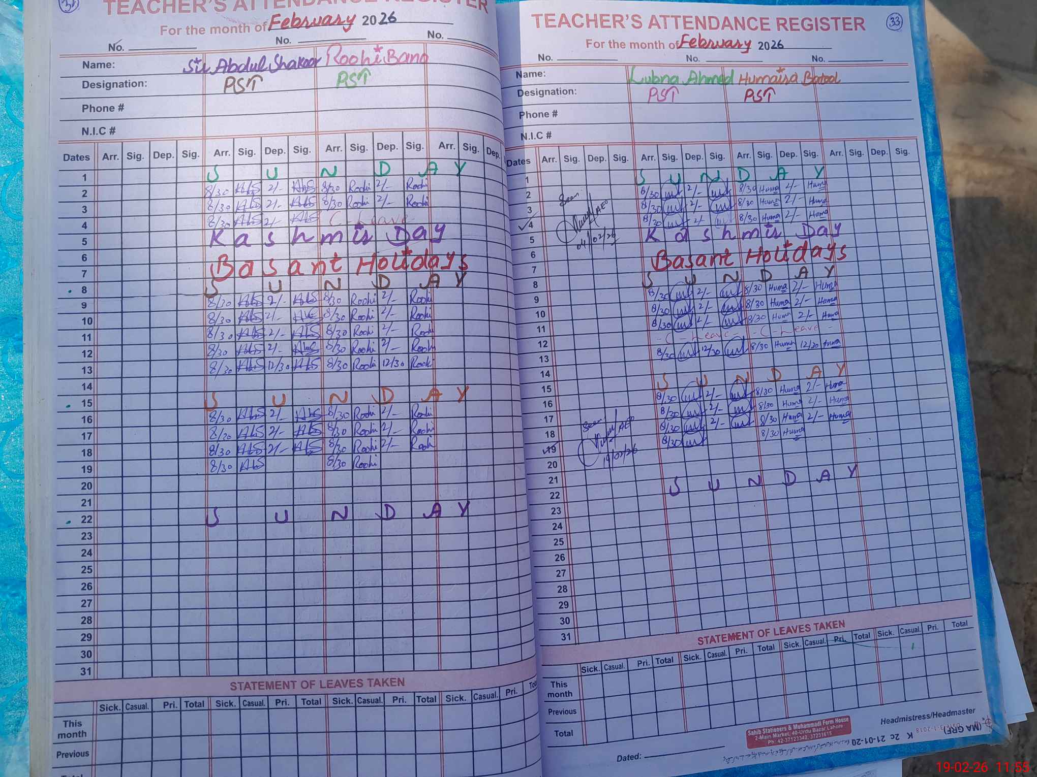 | Name: AB**** SH**** Designation: (School Headmaster's/Headmistress's) PST Phone/Cell Number: 03**** |