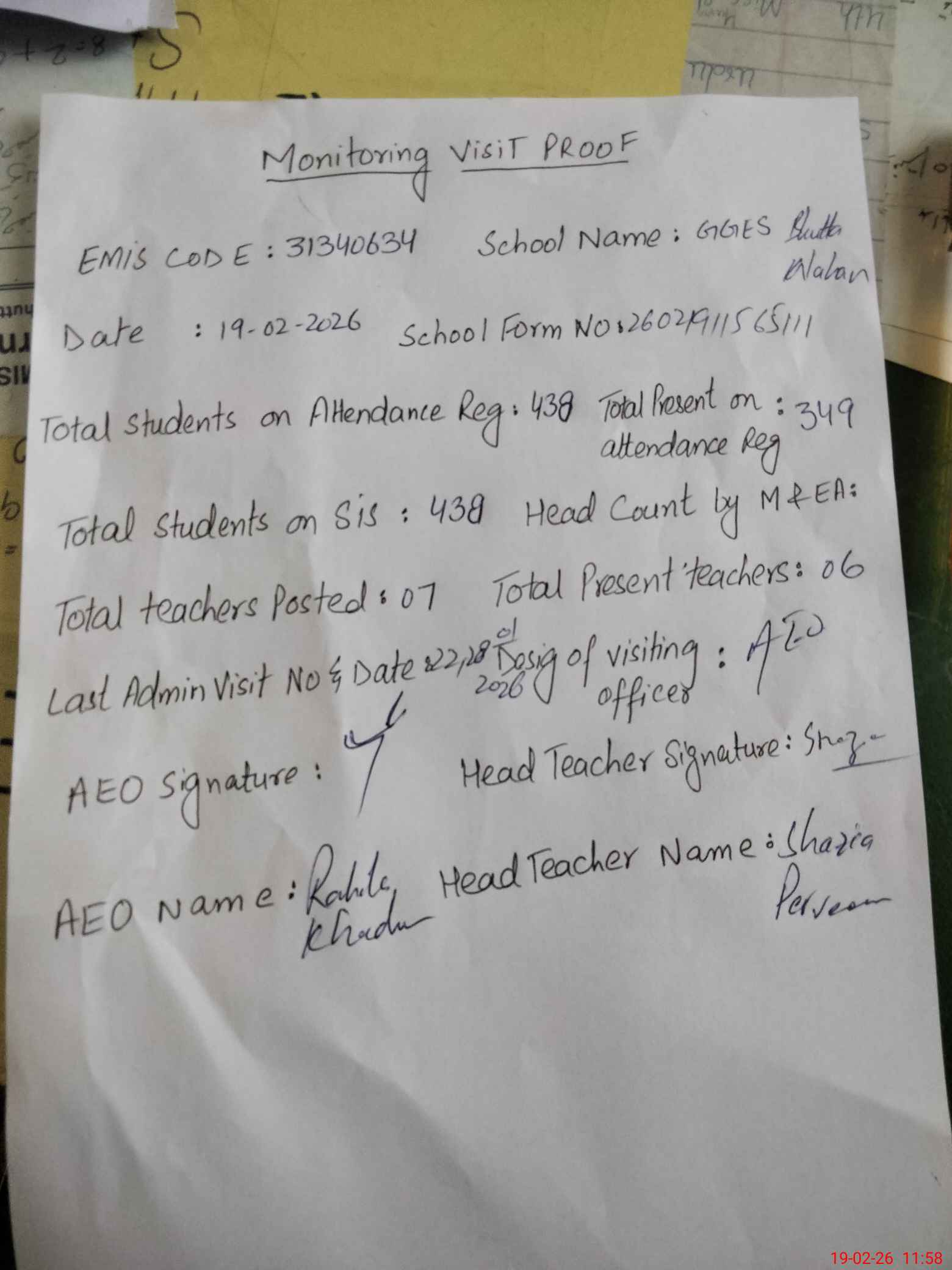| EMIS Code: 31340634 | Name of School: GGES BHUTTA WAHAN | |||