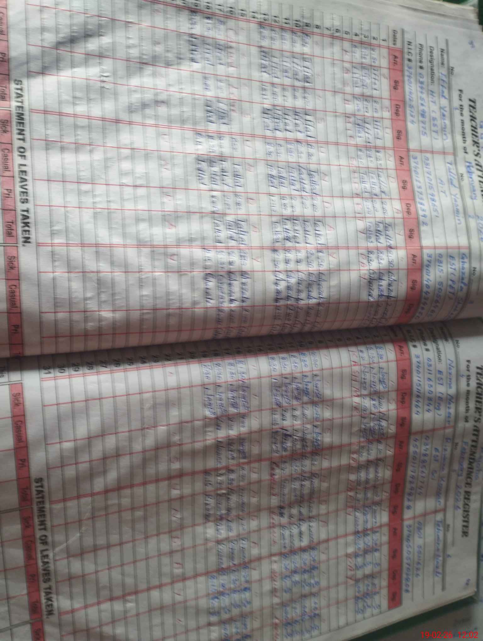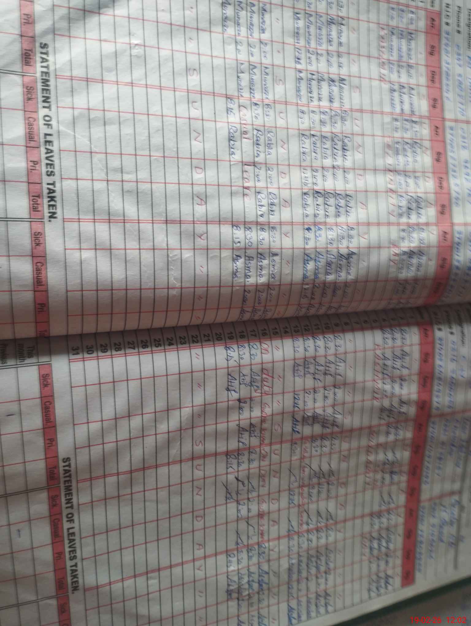 | CNIC | Full Name | Designation | R/C | Absence During Last Calender Month |