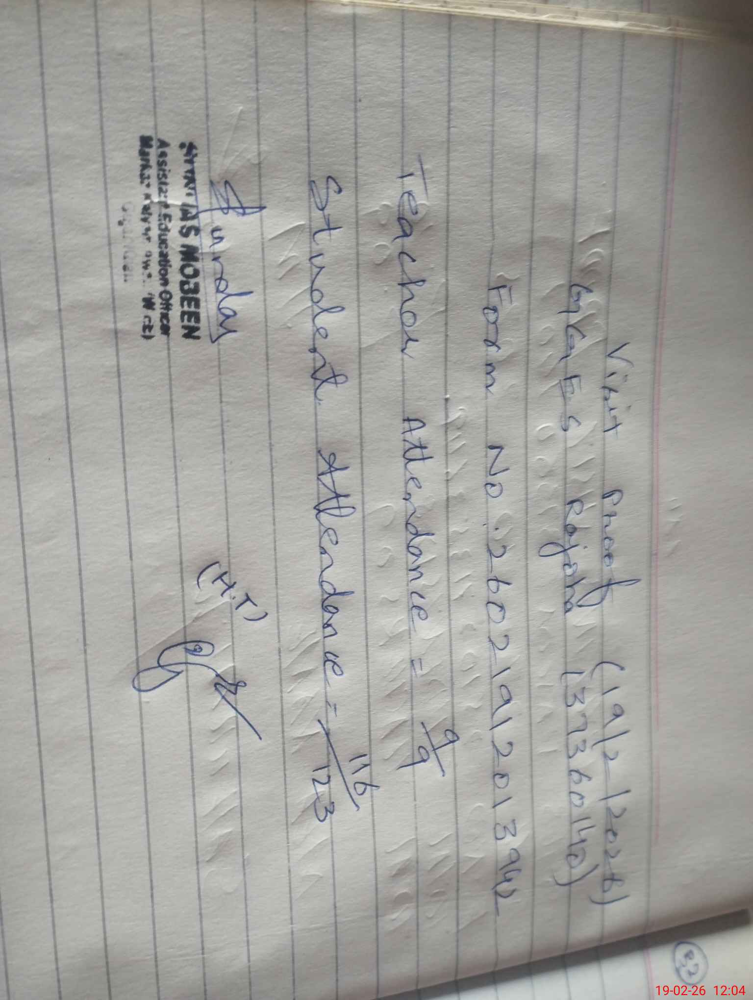 | Attendance Register | Head Teacher | MEA with School | Visit Proof |