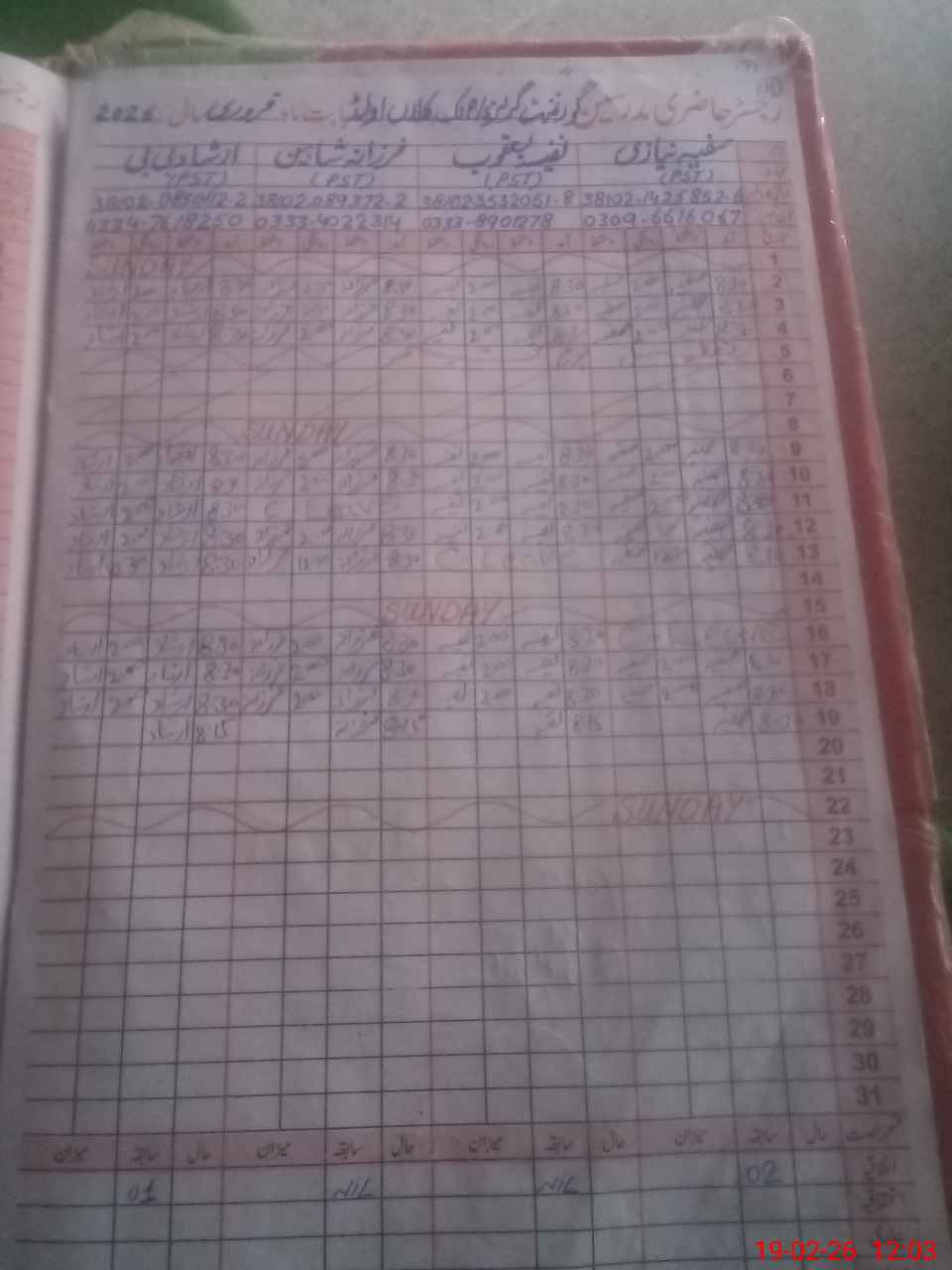 | CNIC | Full Name | Designation | R/C | Absence During Last Calender Month |