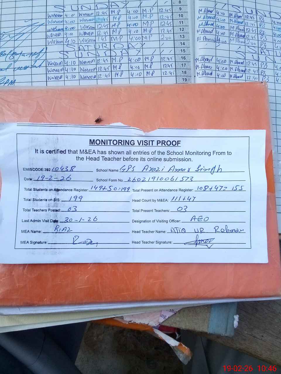 | EMIS Code: 39210438 | Name of School: GPS ARAZI AMAR SINGH | |||