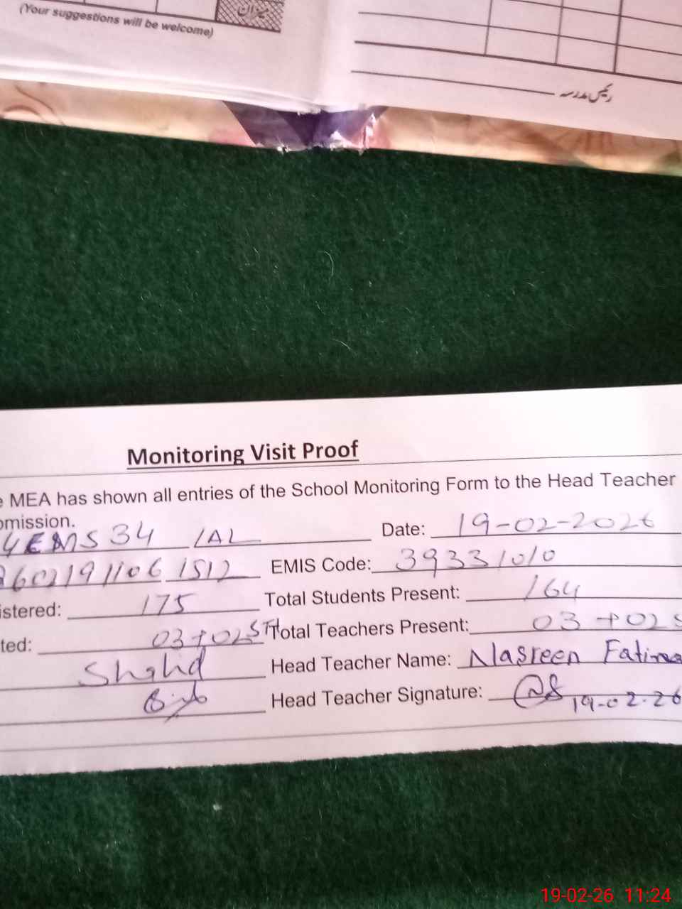 | Certified that this School was Inspected by the Undersigned MEA/DMO Today and the Information Stated Above is as Per Record. | |||||