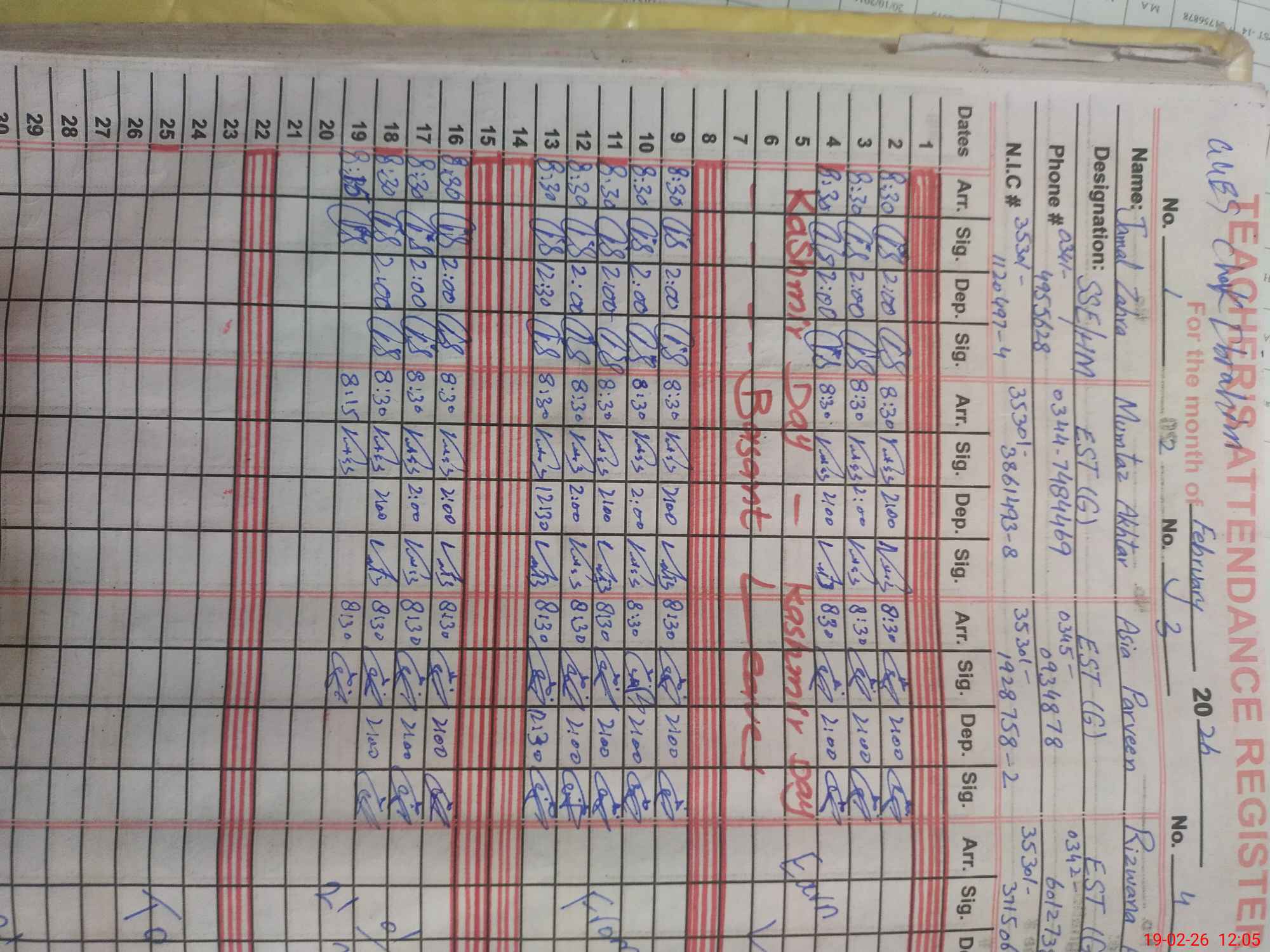 | Name: JA**** ZA**** Designation: (School Headmaster's/Headmistress's) SSE Arts Phone/Cell Number: 03**** |
