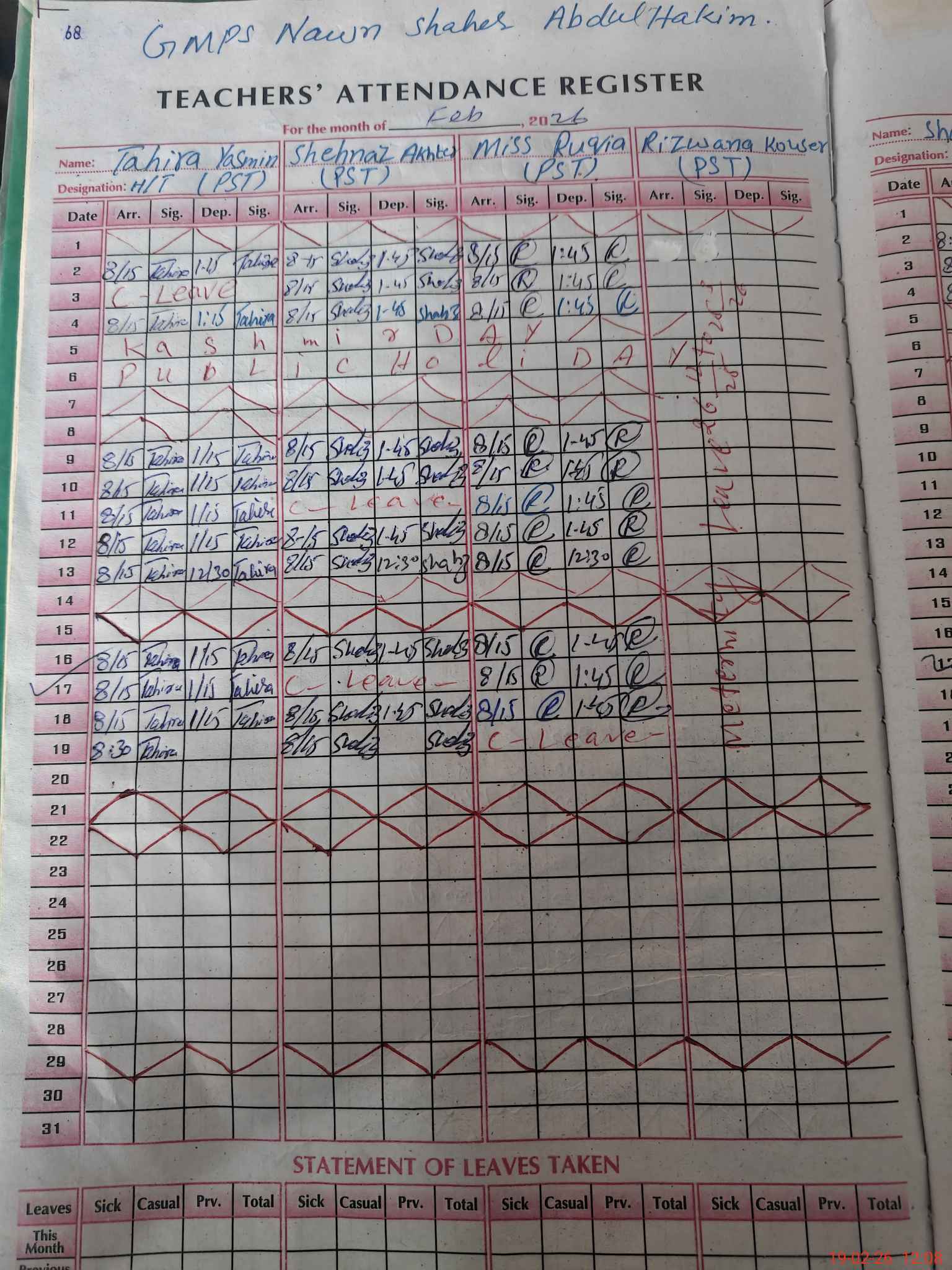 | Leave | Duty | Absent | Maternity | Medical | Ex- Pak |