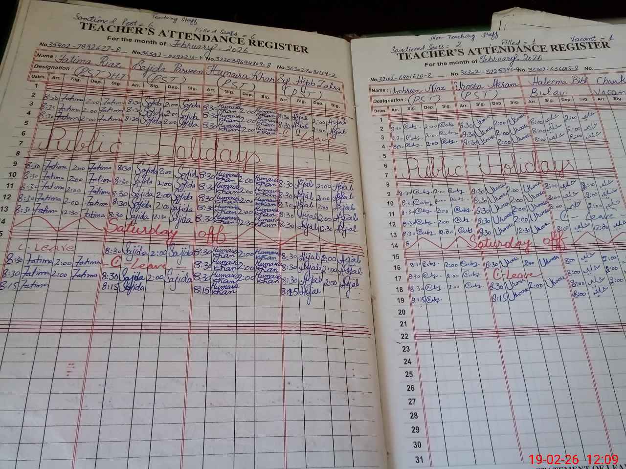 | CNIC | Full Name | Designation | R/C | Absence During Last Calender Month |