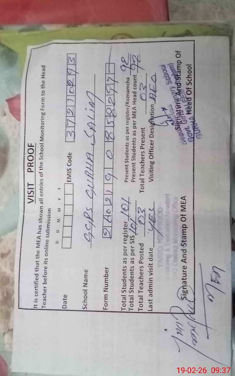 | EMIS Code: 37210293 | Name of School: GGPS GURRA SALIM | |||