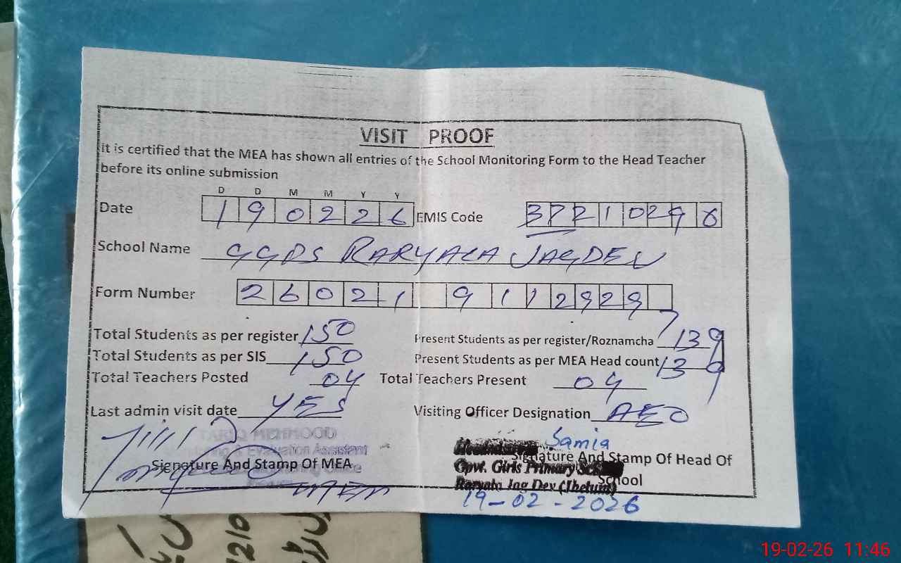 | Attendance Register | Head Teacher | MEA with School | Visit Proof |