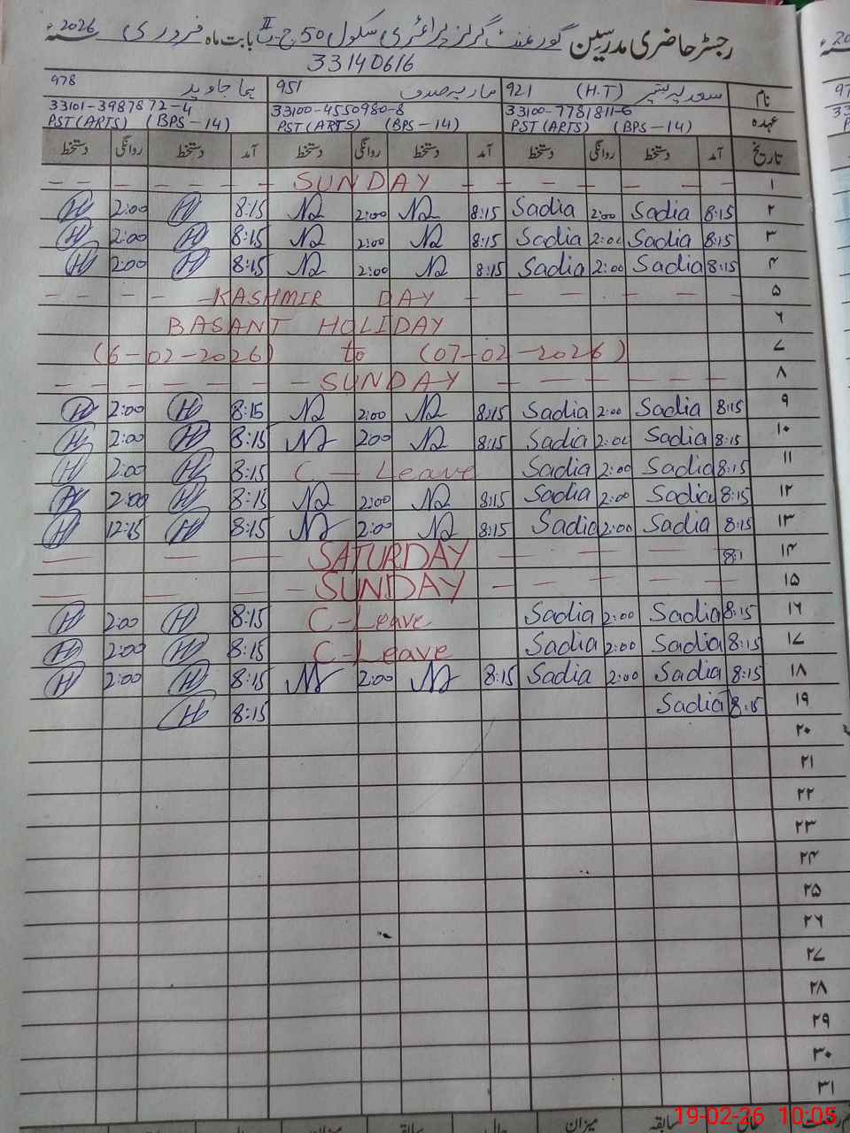 | 33**** | Ma**** Sa**** | PST Arts | Regular | 0 | 0 | 0 | 0 | 0 | 0 | 0 | 0 | 0 | Absent (Un-Authorized) |