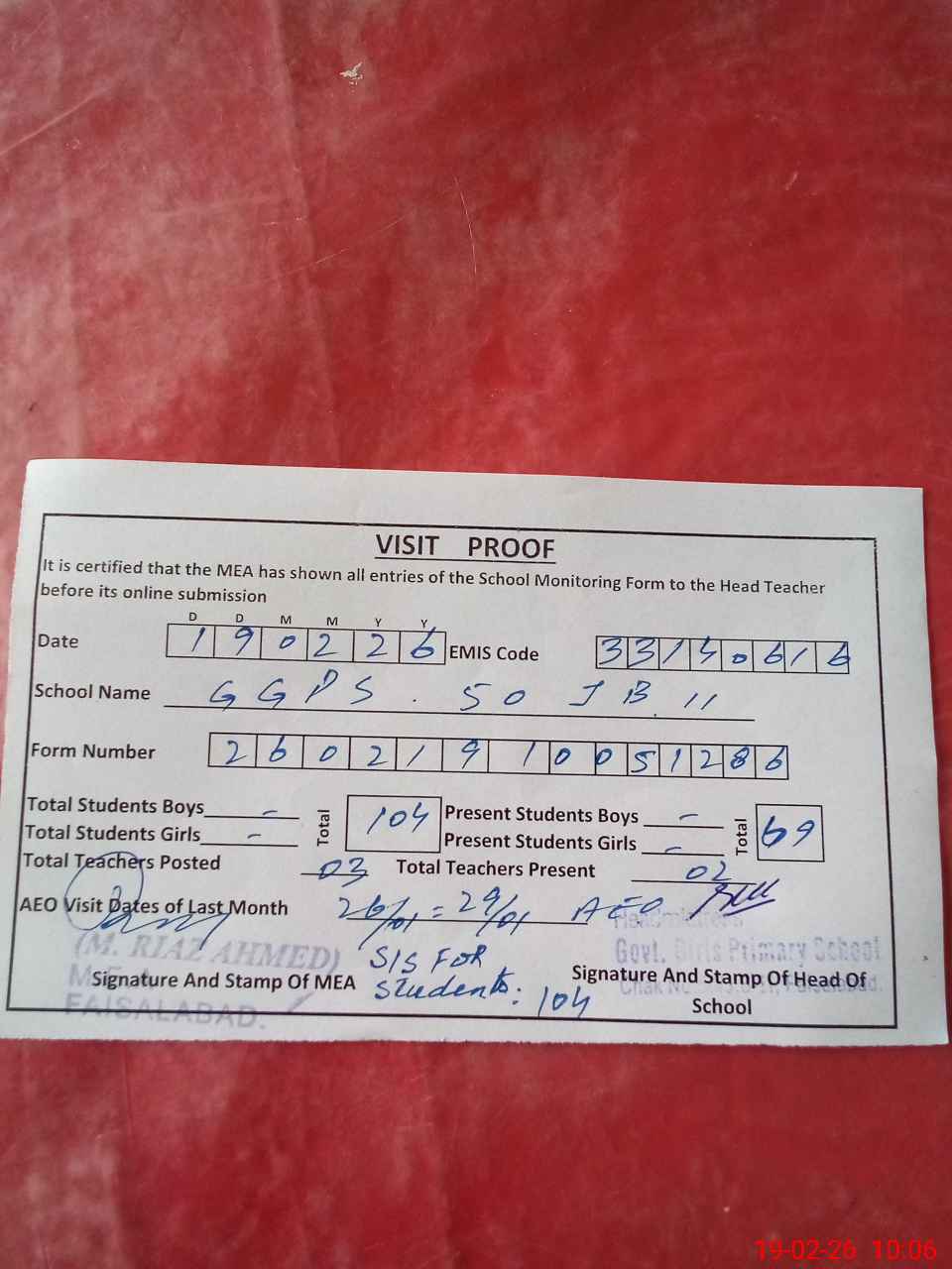 | EMIS Code: 33140616 | Name of School: GGPS CHAK NO. 50 JB II | |||
