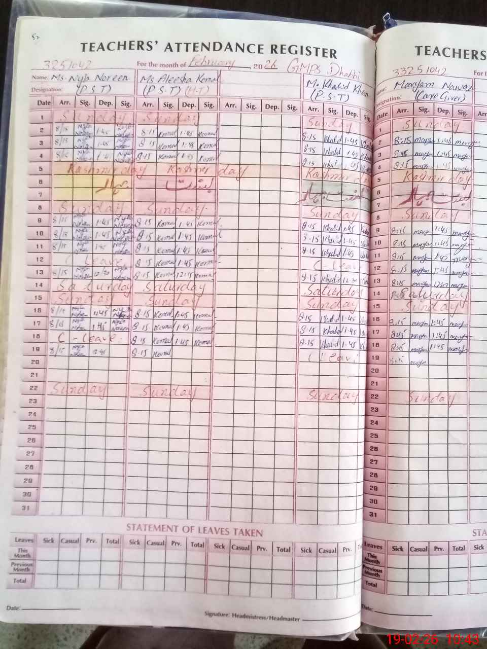 | Leave | Duty | Absent | Maternity | Medical | Ex- Pak |