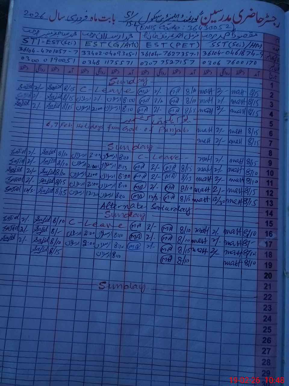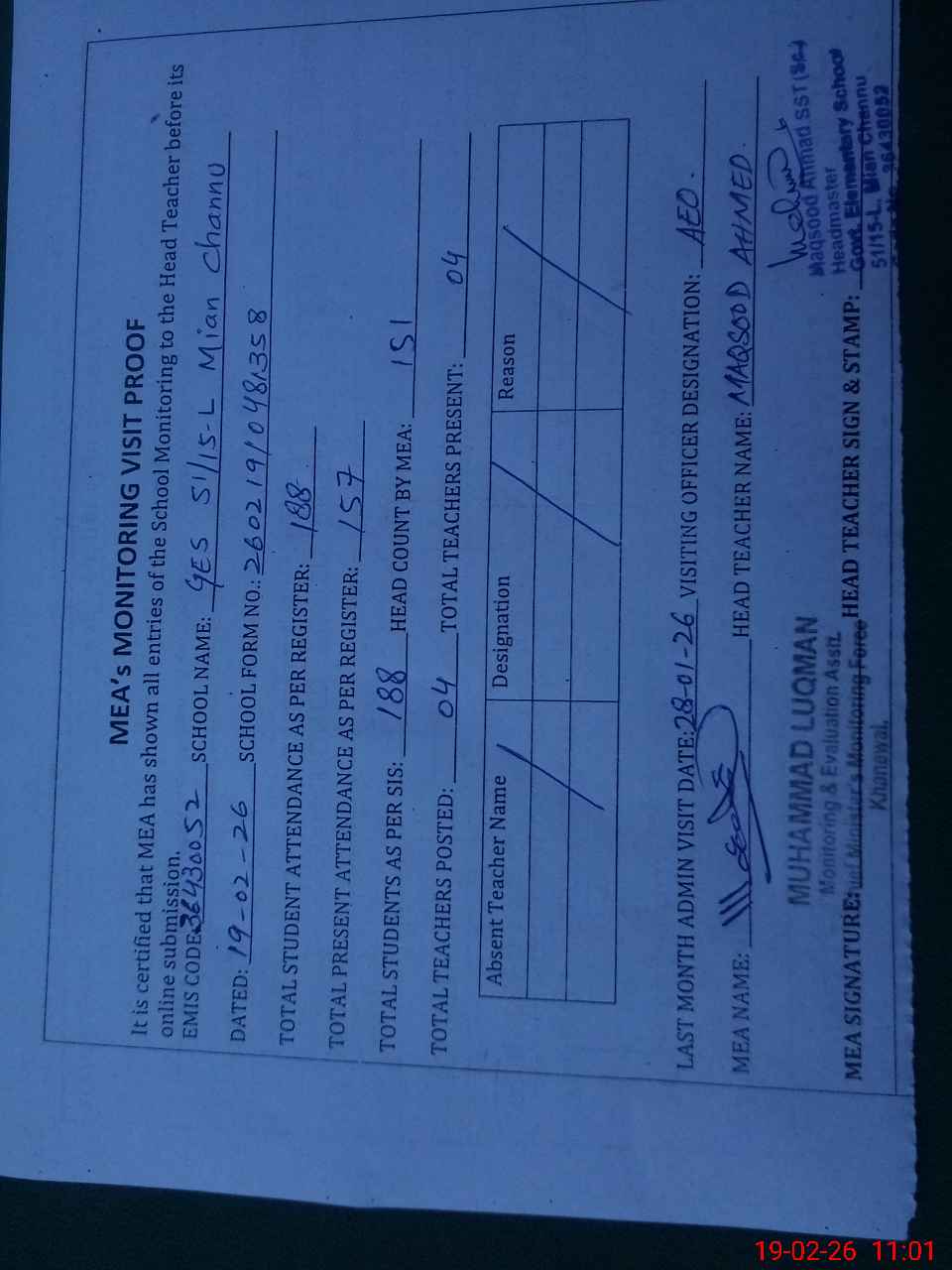 | EMIS Code: 36430052 | Name of School: GES 51/15-L, MIAN CHANNU | |||