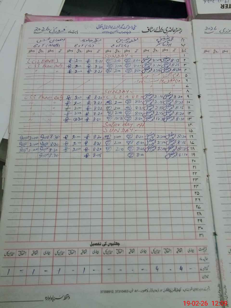 | CNIC | Full Name | Designation | R/C | Absence During Last Calender Month |