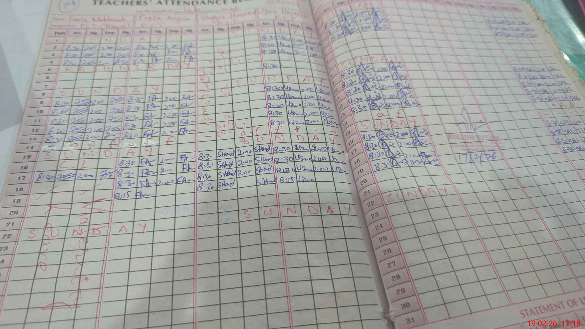 | 36**** | Fa**** Ma**** | PST Arts | Regular | 0 | 0 | 0 | 0 | 0 | 0 | 0 | 0 | 0 | Maternity |