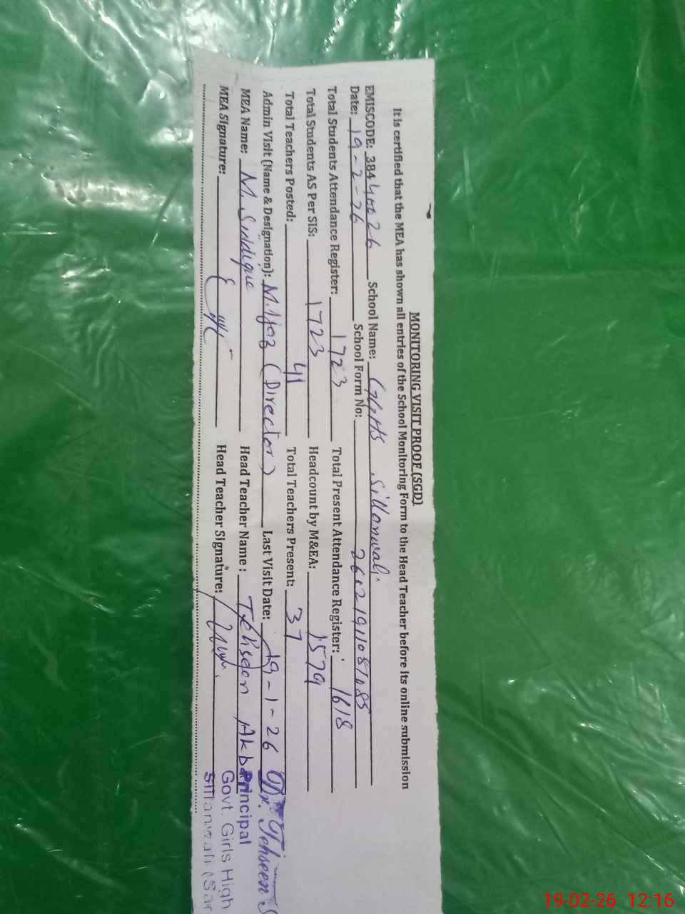 | EMIS Code: 38440026 | Name of School: GGHS SILLANWALI | |||