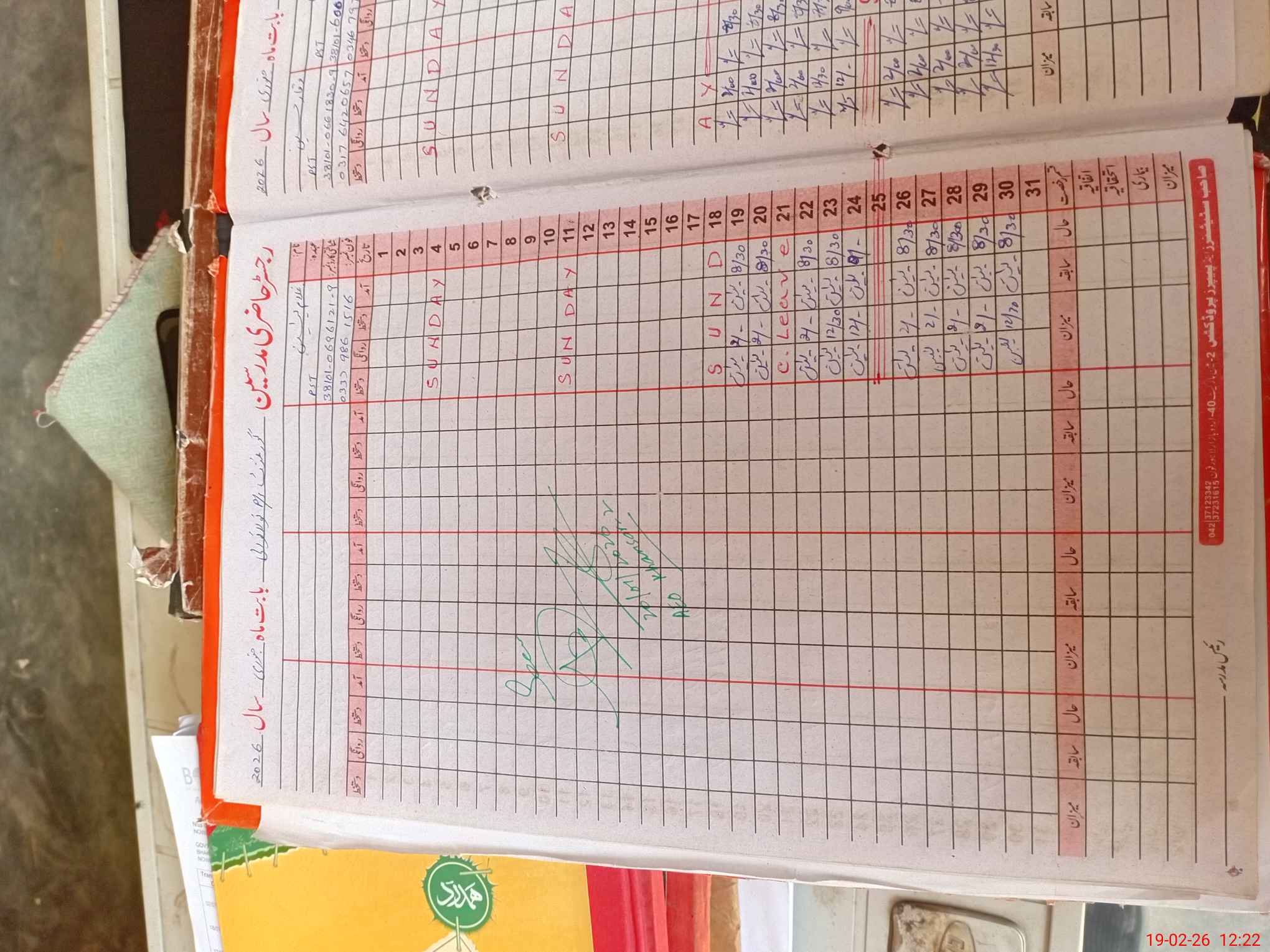 | CNIC | Full Name | Designation | R/C | Absence During Last Calender Month |